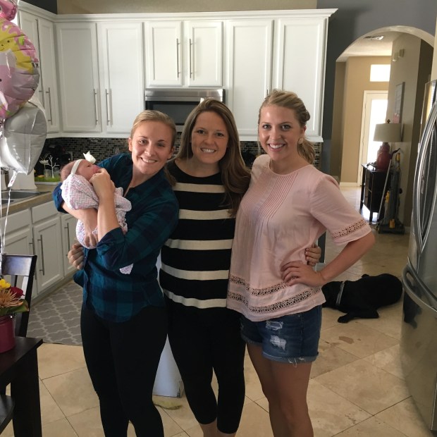Kensie had a very exciting first Saturday at home! Our morning started with some sweet surprise visitors from Jacksonville. 2 of my very best friends showed up with Starbucks for me and cuddles for K!