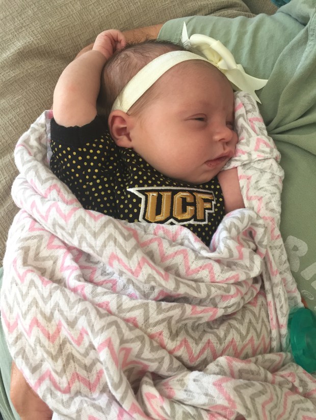 Then she cheered on the UCF Knights with her daddy and she’d like to credit herself with the win. π