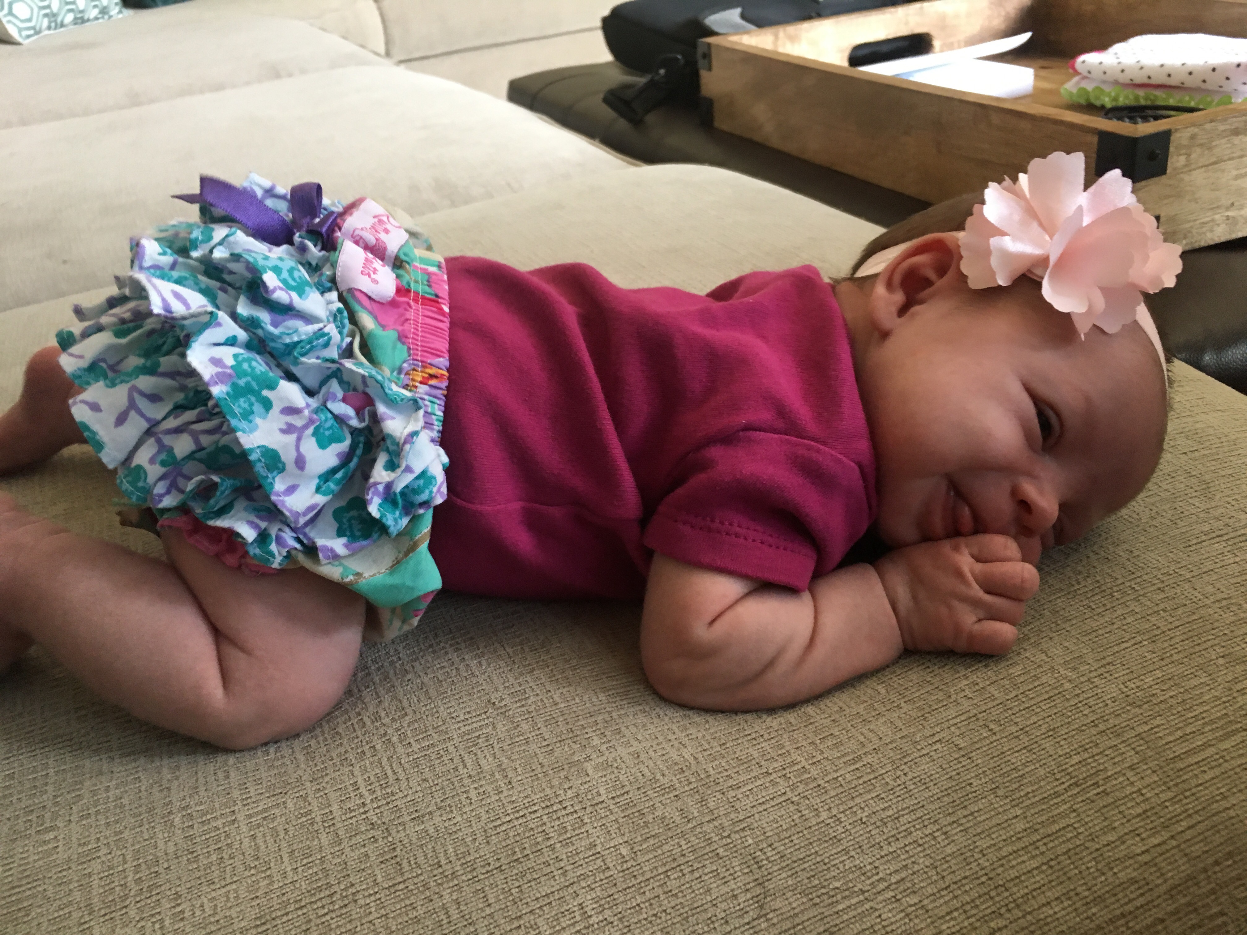 Kensie had a relaxing Friday at home with mommy after our overly busy day yesterday! We discovered she loves the sound of the vaccuum and likes to be on her belly. We even caught a smile on camera today!