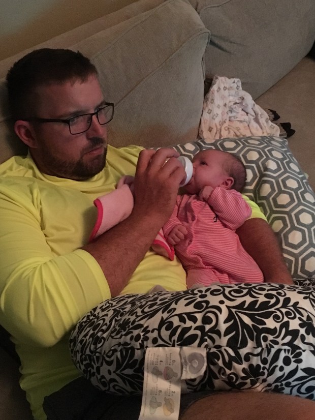 Tonight Chris got to spend extra time with Kensie! She loves staring at her daddy. She had her first bedtime bottle tonight, too, so he could feed her!