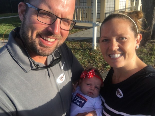 This morning Kensie and I got up early so we could go vote with Chris before he went to work. I’ve always done absentee ballots since I was still registered at my parents house – so I was excited to go in person this year!