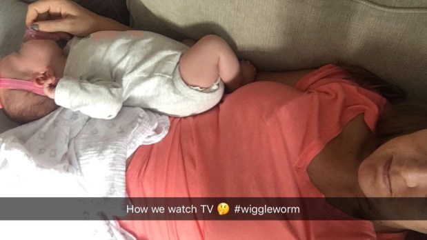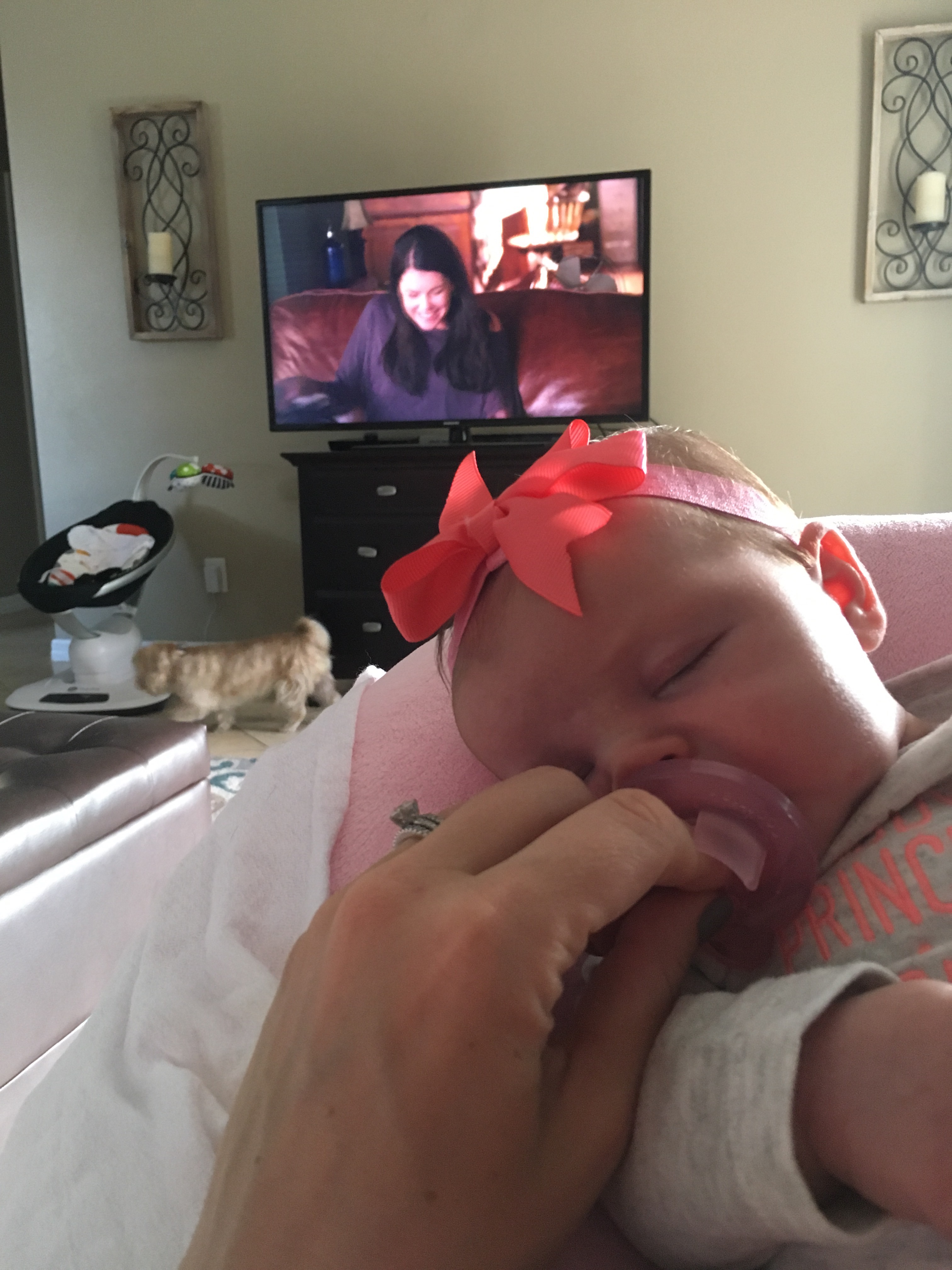 I think everyone asking about Kensie’s sleeping habits jinxed us last night…she went to bed at 11. Was up 1:30-2:30 and then again 4:45-5:30….she usually sleeps 4-5 hour stretches so that was a not so fun change up. BUT, she napped all morning and I was very thankful for that since I had to find new healthcare for us which is a stressful, expensive disaster.