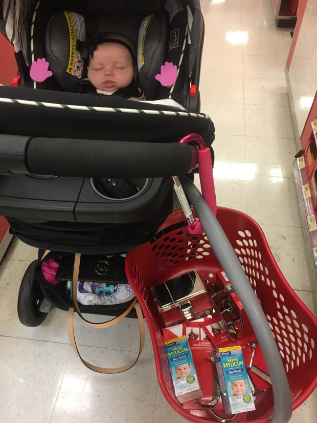 She was a great shopping buddy while I ran lots of errands to prep for this weekend’s events! I even used my “mommy clip” for the first time. Thing is brilliant.