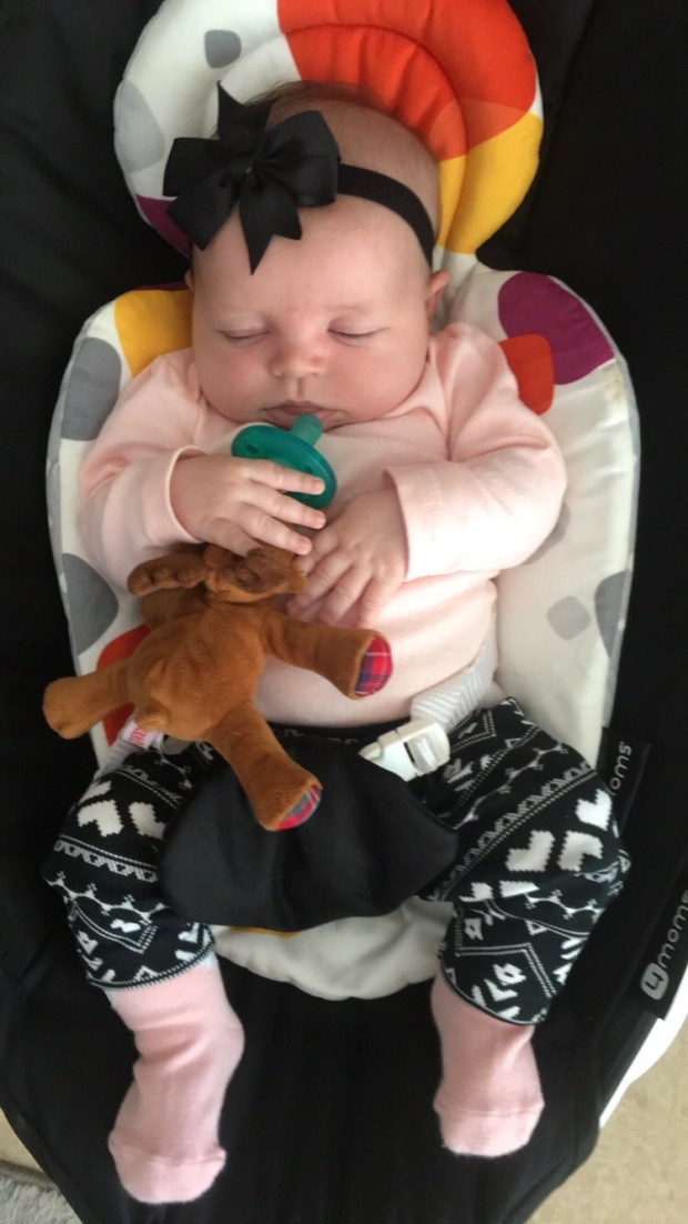 When we got home it was a different story. I fed her, gave her her bath – and sure enough she LOST it. When I held her upright she kept sucking on my collar bone. I thought there was no way she could be hungry since I just fed her literally everything in me – but sure enough…I took some milk out of the fridge and she chugged almost 3oz and then was out like a light!