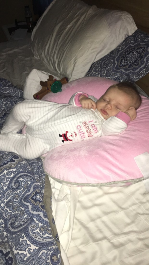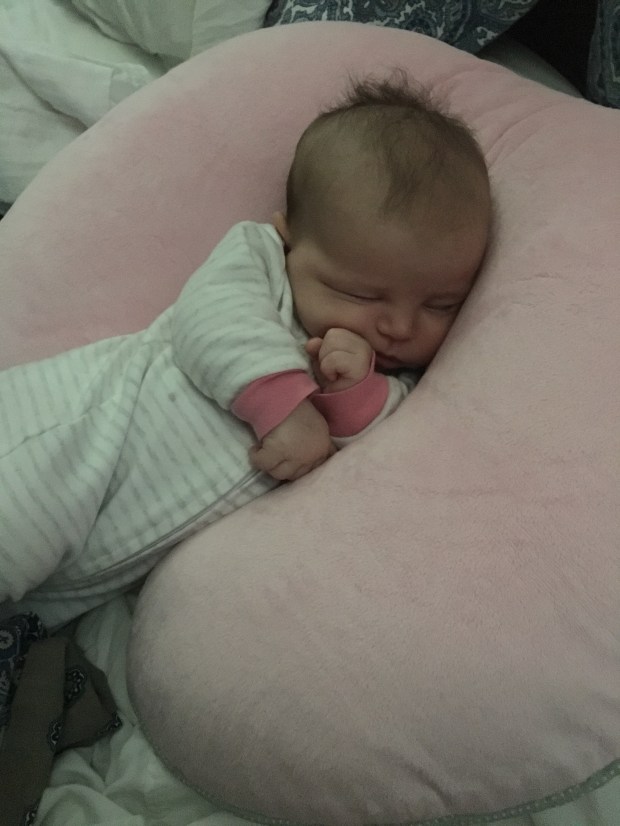 Kensie was pretty entertaining with her morning nap positions today. She woke up at about 8 to eat. She passed right back out so I set her in her boppy so I could get some breakfast. These photos explain her coziness better than words ever could…