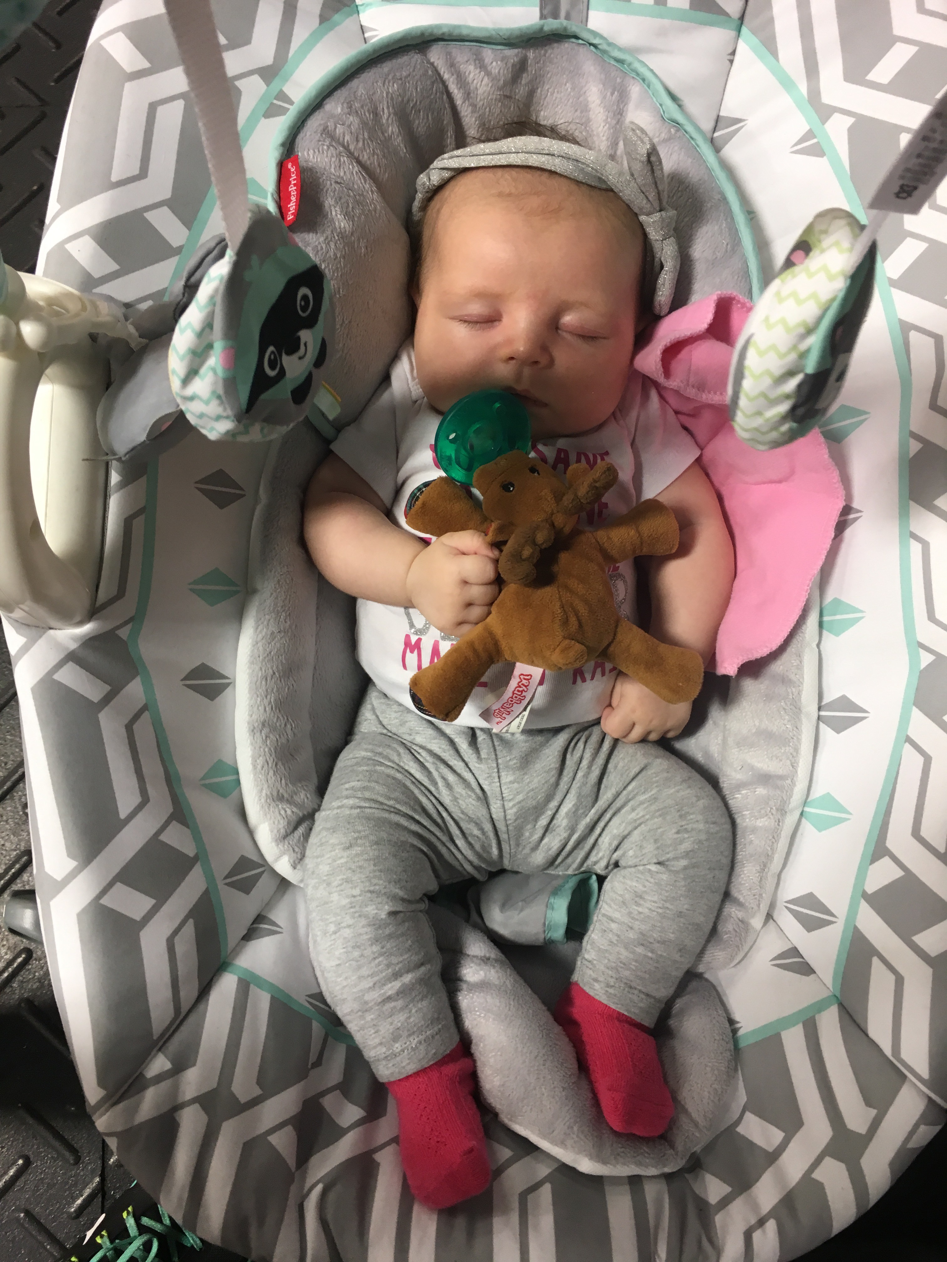 K usually naps at the gym at some point but today she stayed awake the wholllle time. So, naturally she started crying from being overtired. Luckily it was right when daddy showed up so of course he saved the day!