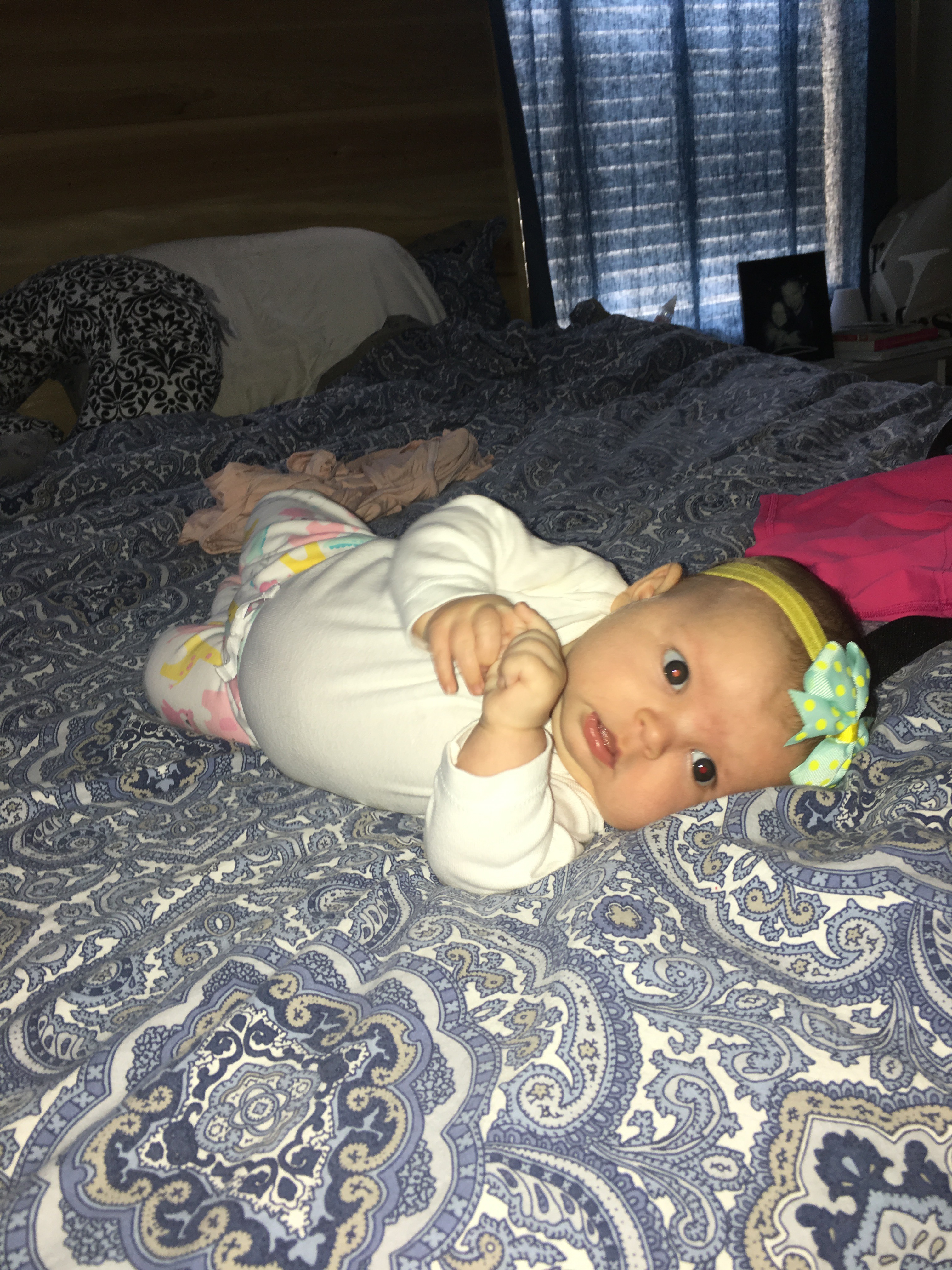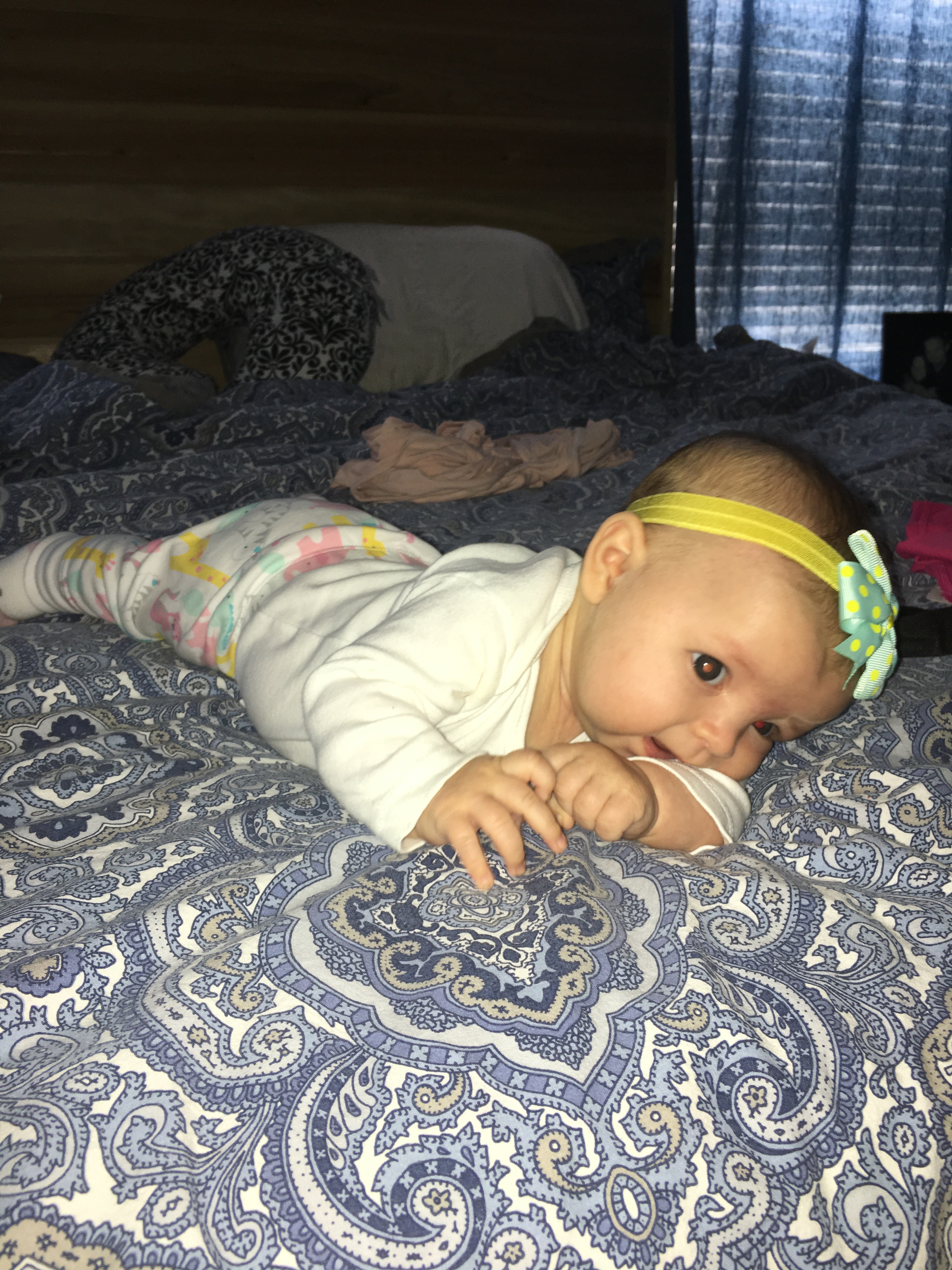 I’m learning her little quirks and tricks and I have noticed when I set her down she (usually) immediately fusses; however, if I walk away she gets quiet and will sit by herself just fine! If she sees or hears me (or if daddy goes up to her) she starts crying to be picked up again. I’m on to you, KB! Smart little cookie…This doesn’t apply when she’s having a meltdown, just when she’s “bored” at the gym sitting in her chair alone – wide awake!