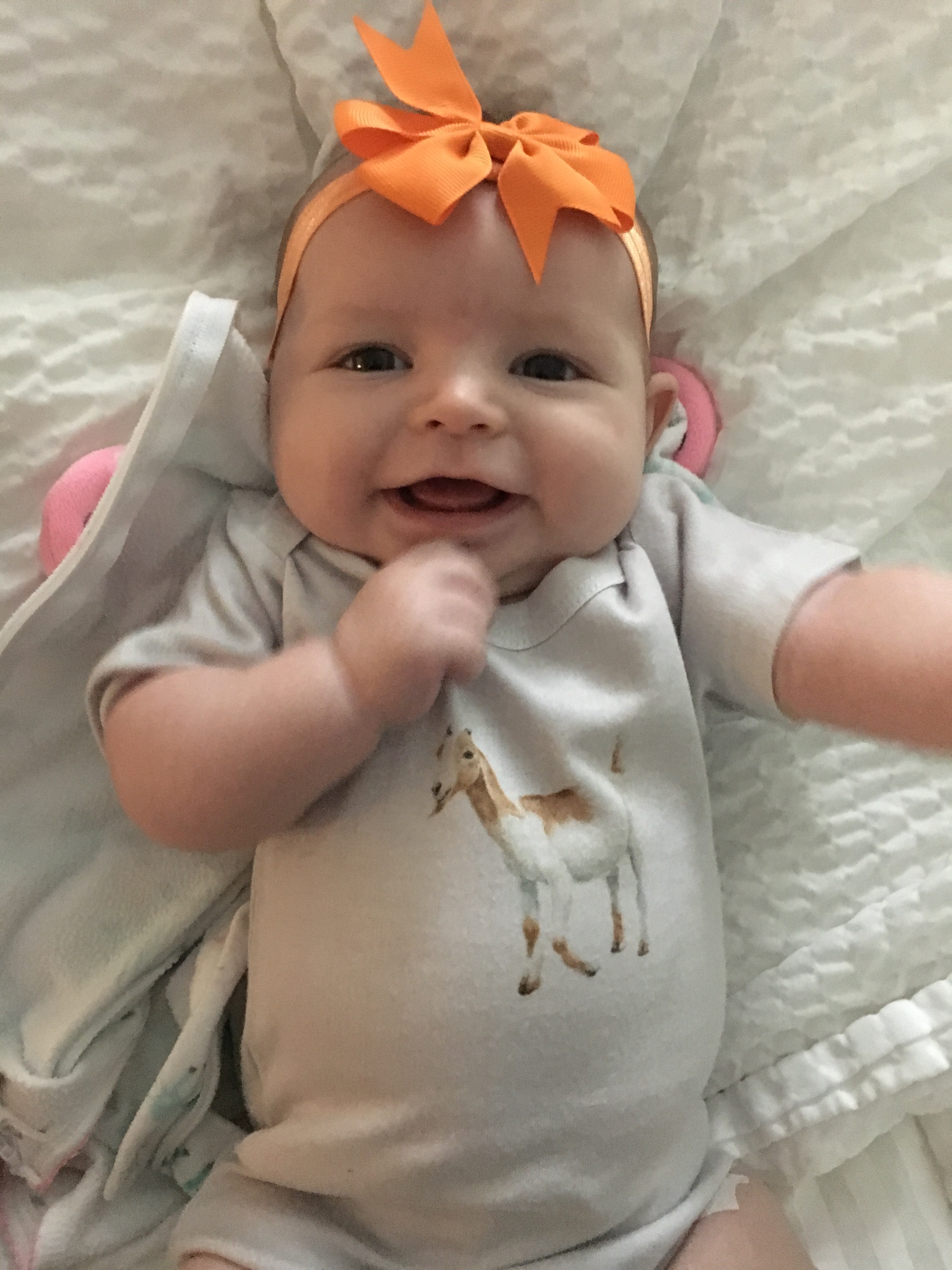 The best part of this weekend is that Kensie started laughing!!! I was giving her kisses and she was making a funny face so I was laughing and she started cracking up!! It’s the most adorable thing ever. She even did it again when I went to show Chris! But…of course when we try to video it she stops. Such a ham. I’m determined to get it on camera this week!!!