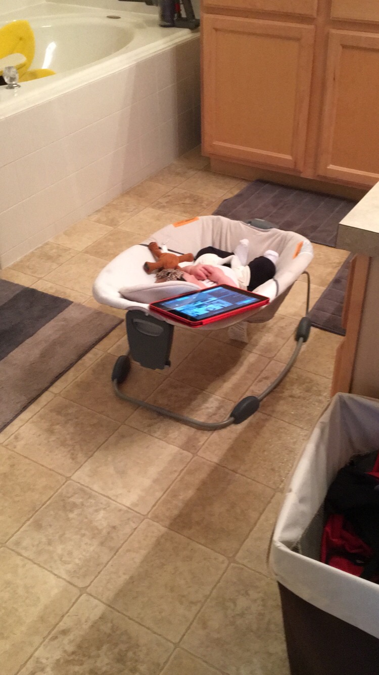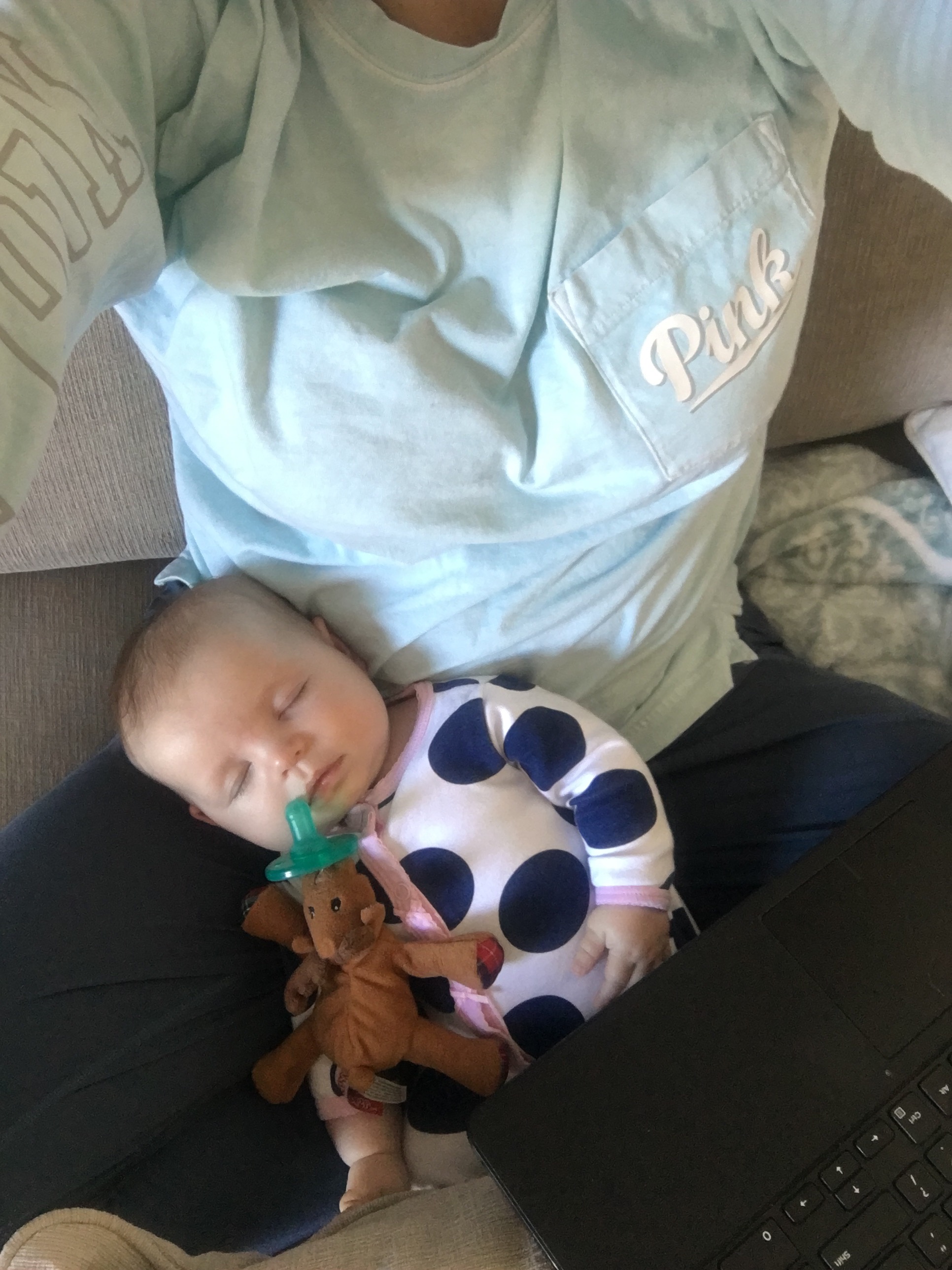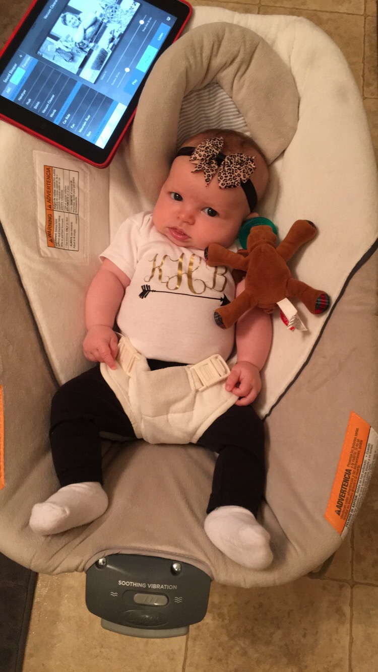Kensington was a little sweetheart today! She sat in her mamaroo for a bit this morning and then just wanted to hang out so she watched Baby Einsteins in my lap while I worked and eventually took a nap!