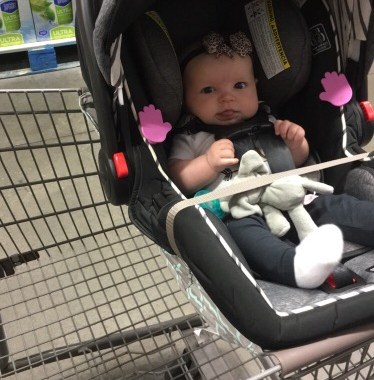 I got to use my new Binxy Baby today!!! It was AMAZING. This is the baby hammock I posted about last week. It holds the car seat or I can take her out and set her in it. I was able to take her and still have room in the cart! Brilliant. Easily one of the most useful Baby gadgets I own.