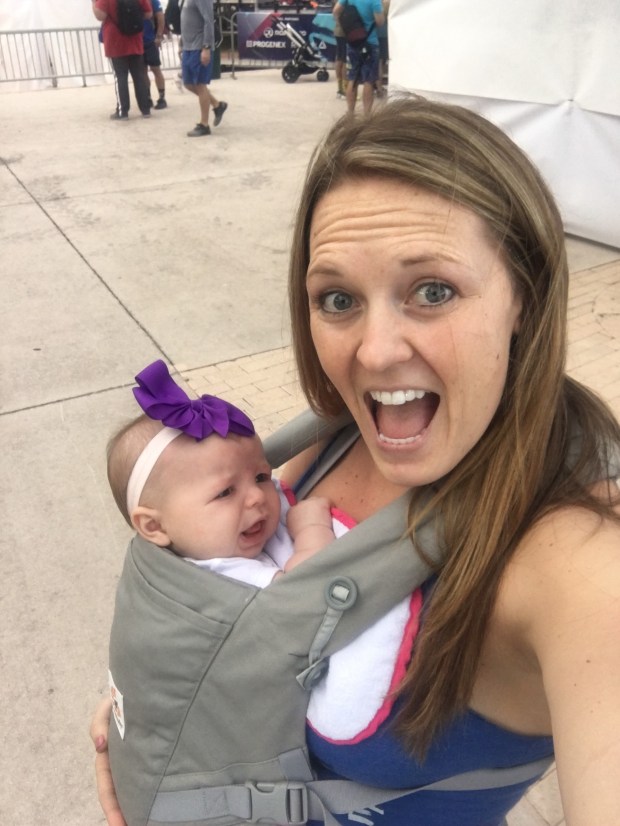 This afternoon I wore her in the ergo baby while I coached at 4 and she LOVED it. She stayed awake the whole time and just watched everyone. She even started chatting while I was coaching mobility. Kensie will be ready to take over in no time. π