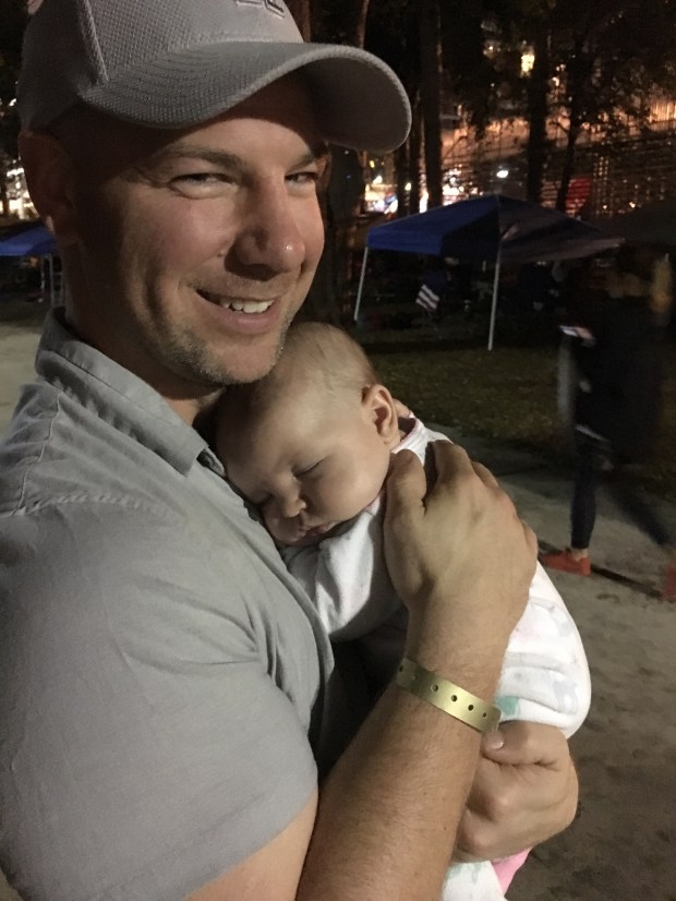 On Thursdays I coach in the mornings so K rocks her PJs to the gym! She was sleepy today and as much as I wanted to go back to bed with her, duty calls. Kensie was fussy (because she was tired and miss FOMO won’t just go to sleep) while I warmed the class up so I picked her up and she passed right out.