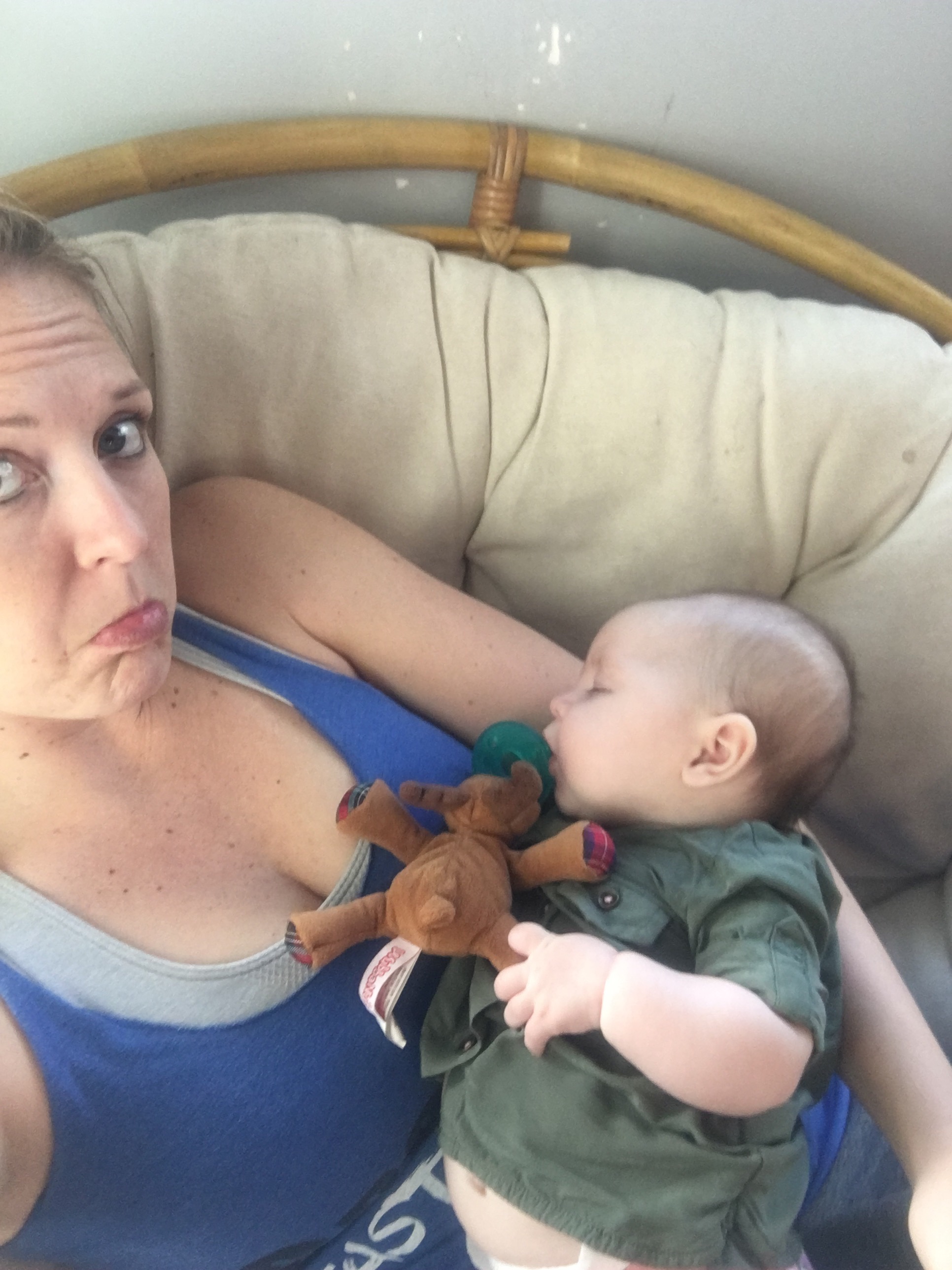 When we got home I went to feed her and she stopped eating after about a minute and started WAILING. It was then I realized I forgot to give her the Zantac this morning. Holy. Cow. She surely reminded me. Mom fail.