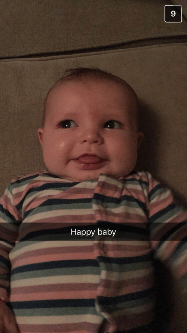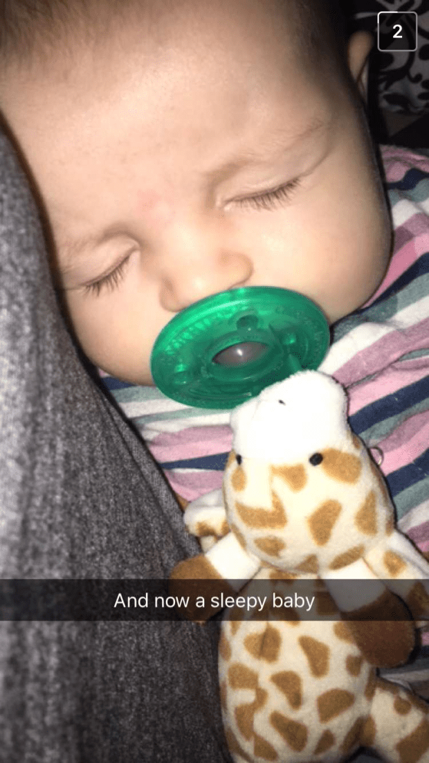 I got her to sleep before I left and crossed my fingers for no meltdowns while we were gone. Then I got these snapchats…