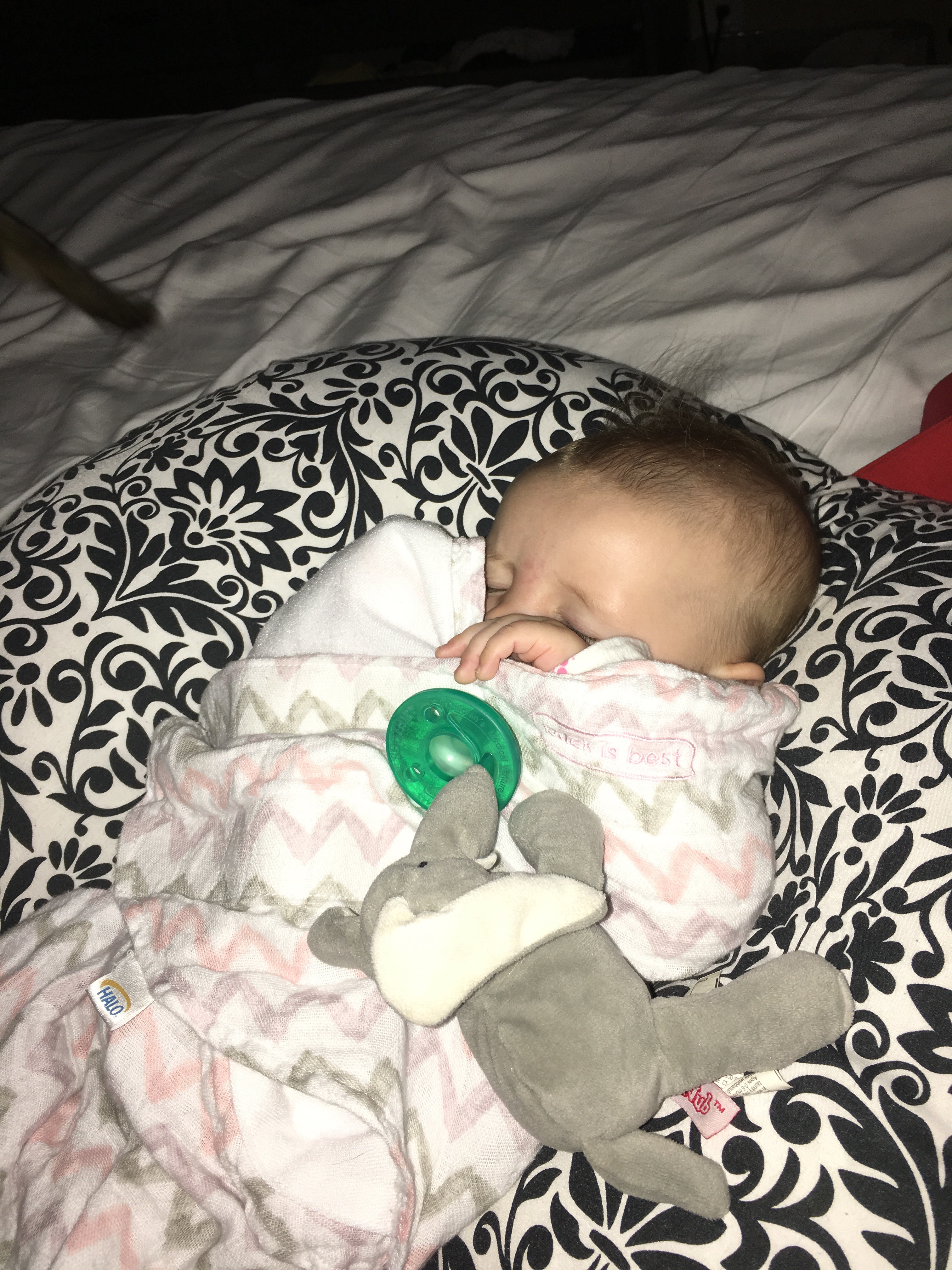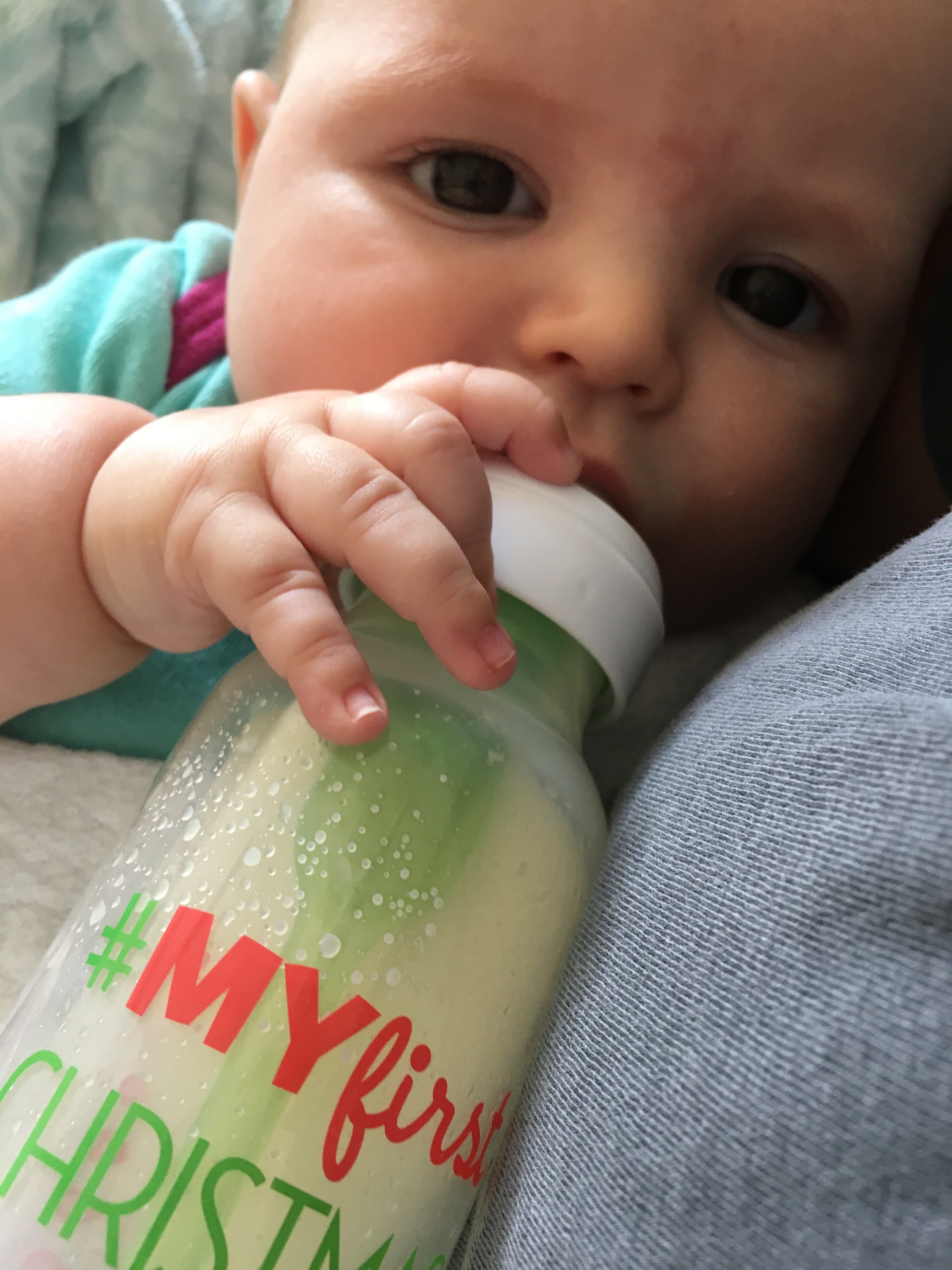 Since Kensie’s still not been eating long enough, I pumped her a bottle to make sure she got the “fatty milk” in. She held it all by herself!!!