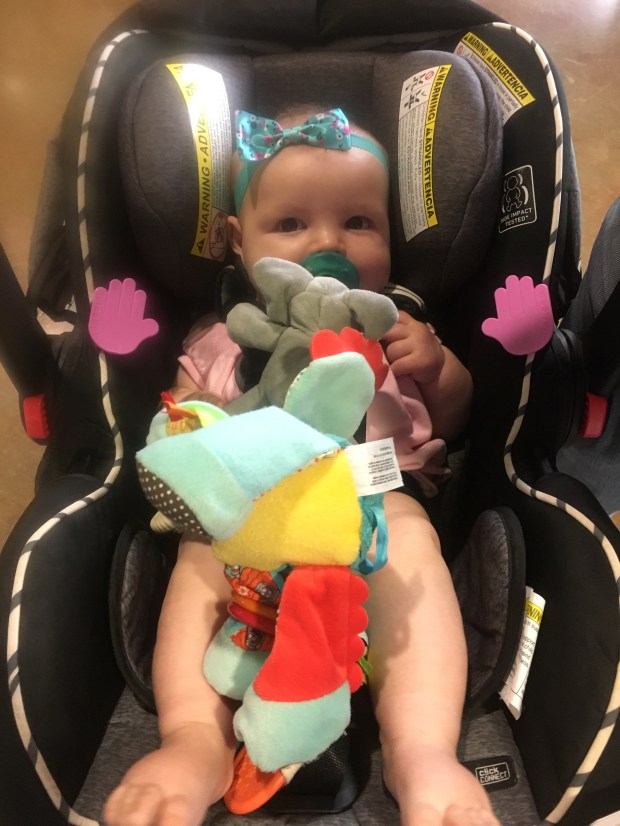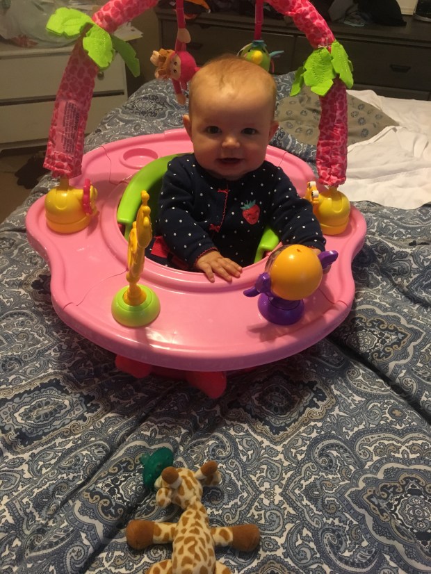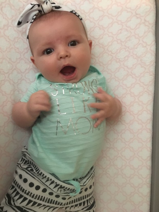 Of course we missed her like crazy; but, Gramma kept us updated with lots of pictures, a few videos, and of course FaceTime. K rocked her outfits, as planned, with no blowouts and took lots of naps! Huge huge HUGE thanks to my momma for taking such great care of our little girl all weekend! She even sent her home with clean laundry, clean bottles and of course new toys (and clothes because we all know this child needs more clothes…)