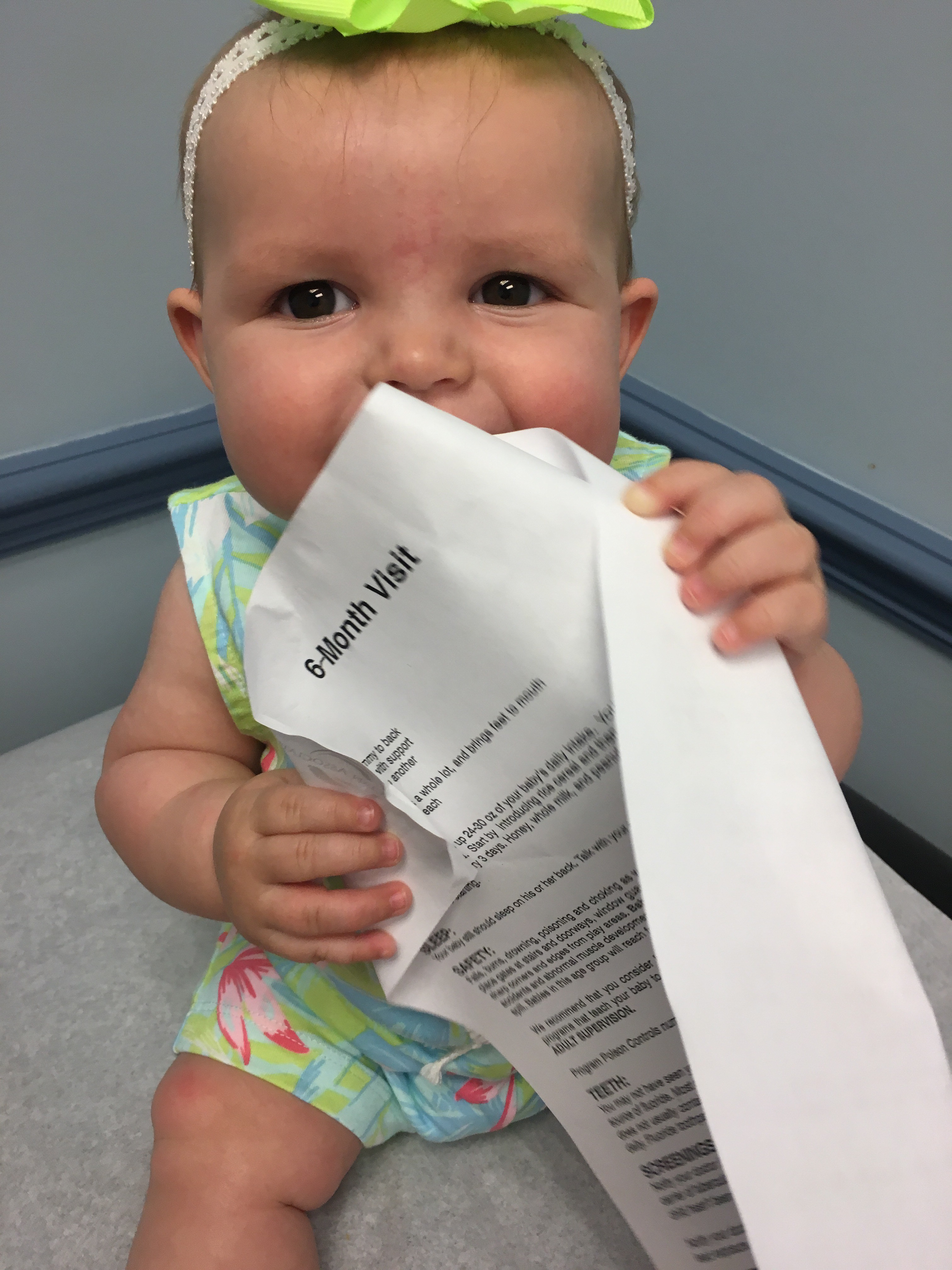 We have one healthy, happy baby girl! Kensie only had a few tears after her shot and as soon as I let her eat the paper she was magically okay.
