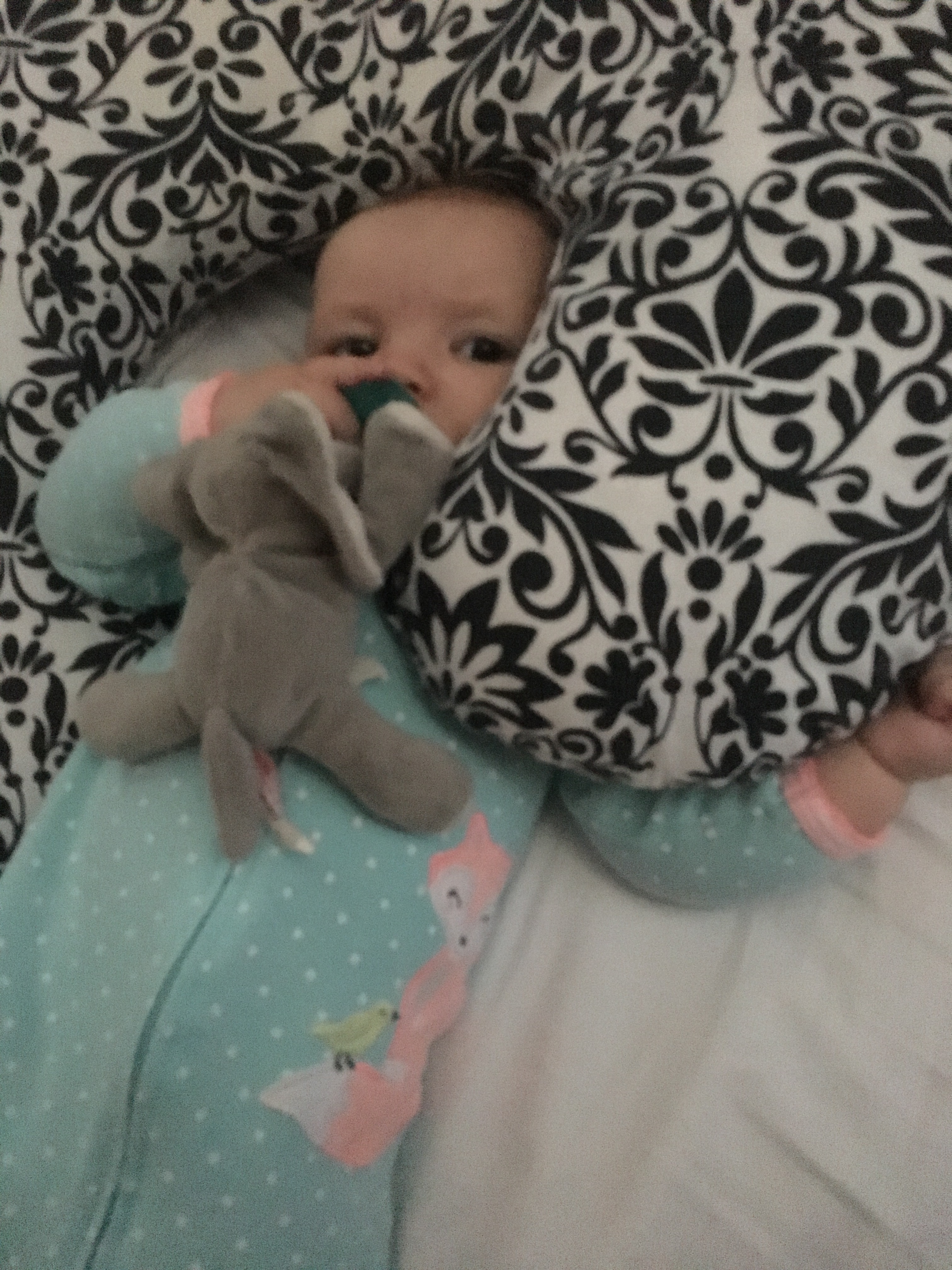 Long story short – the poor babe was constipated (y’all know that was short lived now that she’s the blowout queen) and laying her in the position to feed her made her stomach hurt. She’d start to eat because she was hungry and then the pain in her tummy would make her scream.