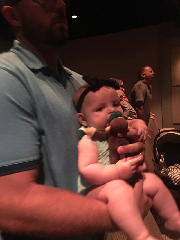 She dozed off for her morning nap in her car seat so I kept her with us instead of taking her to the nursery. Fail.