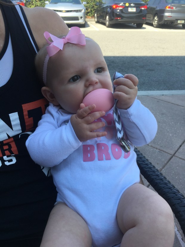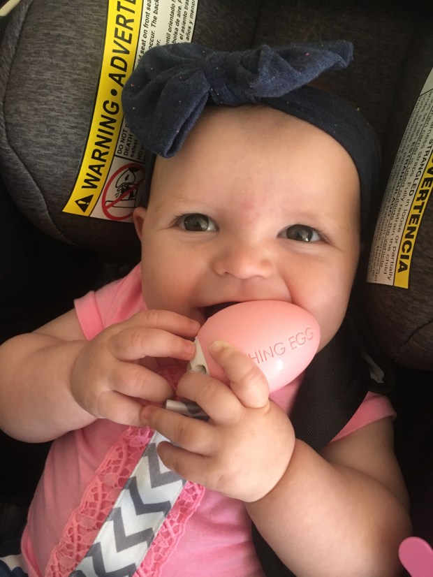 Kensie loves her egg! I mentioned these in a post back when K got hers. The Teething Egg is a soothing Teething toy that’s the perfect size for their little mouths and the perfect shape for them to hold while they chew on it!