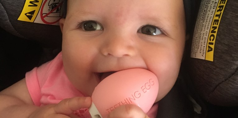 Kensie loves her egg! I mentioned these in a post back when K got hers. The Teething Egg is a soothing Teething toy that’s the perfect size for their little mouths and the perfect shape for them to hold while they chew on it!