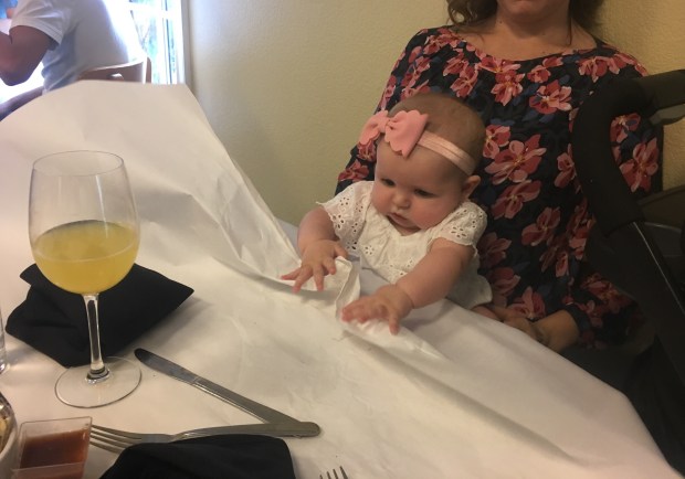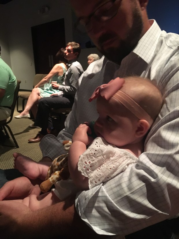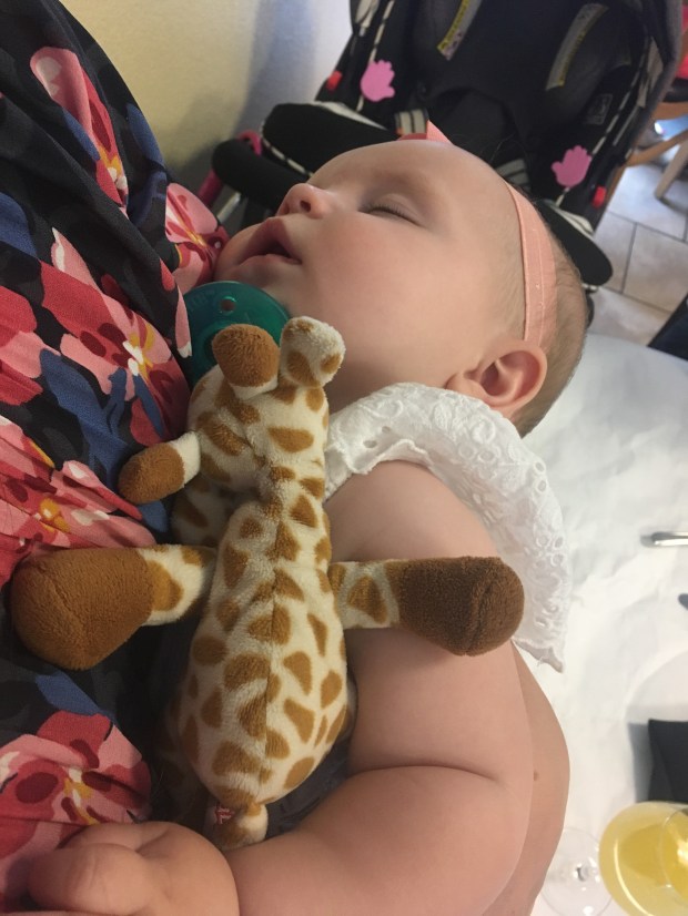 Of course Kensie fell asleep RIGHT as we pulled up to church, so I kept her with us so she wasn’t just a cry baby for the girls in the nursery. It took some swinging and bouncing and a sore arm, but she napped through the sermon. Phew!