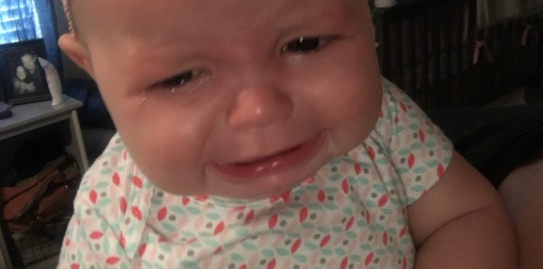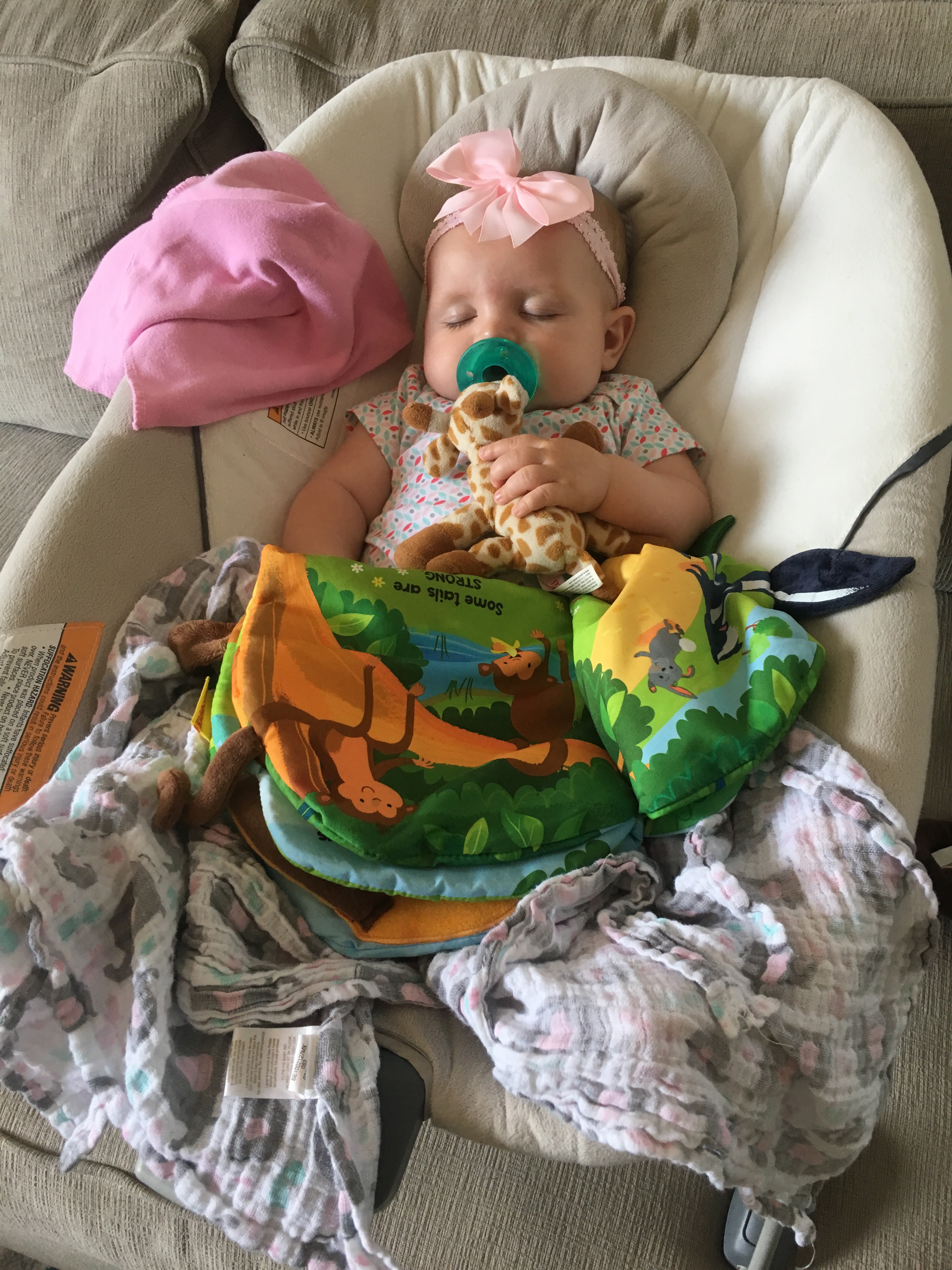 Isn’t that the saddest sound? For the record, I promise I’m not an awful mom who just set her down to video her crying. This was about 20 minutes in after I tried literally everything to calm her down. Holding her didn’t help. Holding on her belly didn’t help. Diaper change? Nope. Mylicon and bicycle legs for gas? Also nope. Pacifier and rock incase she’s still tired…nada. Feed her? Helllll no. Sit down with toys? Worked for a split second then also a big fat NOPE.