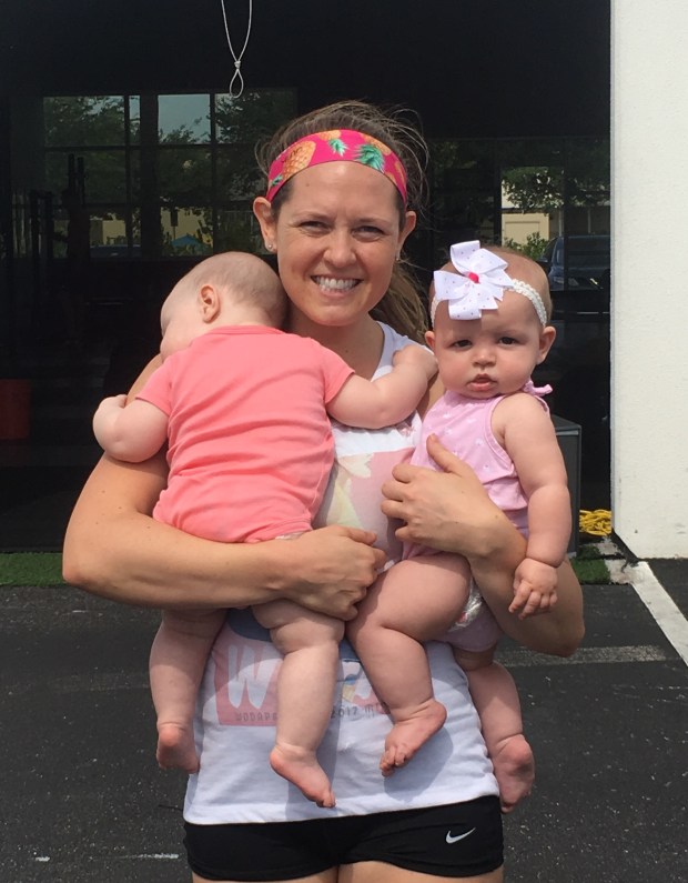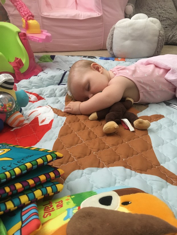 A couple brought their sweet baby in and she started to fuss as soon as their workout was starting so I picked her up and she went to sleep. She was so sweet! Kensie loved having a friend to stare at. They’re only 2 weeks and 1lb apart!
