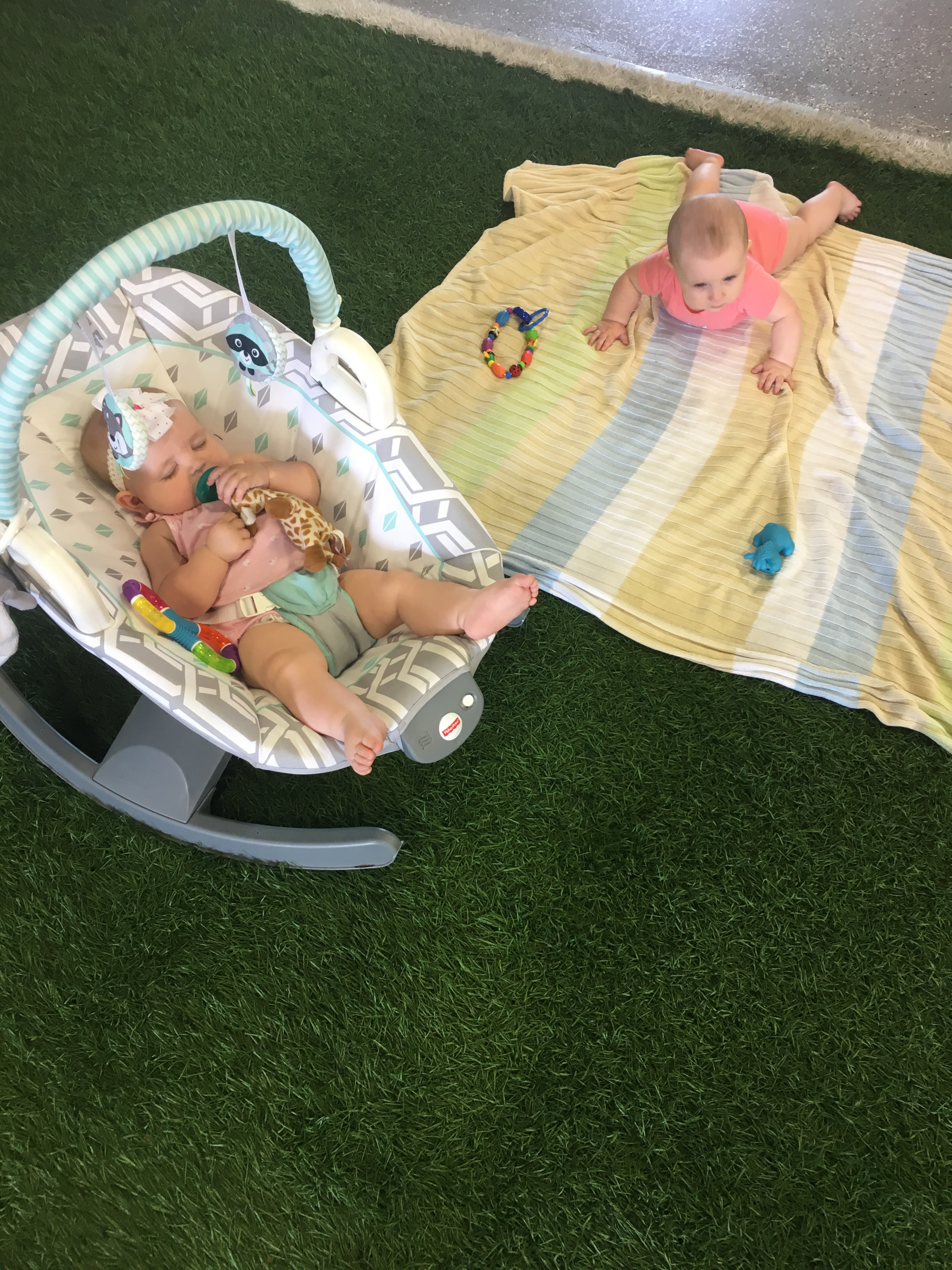 A couple brought their sweet baby in and she started to fuss as soon as their workout was starting so I picked her up and she went to sleep. She was so sweet! Kensie loved having a friend to stare at. They’re only 2 weeks and 1lb apart!