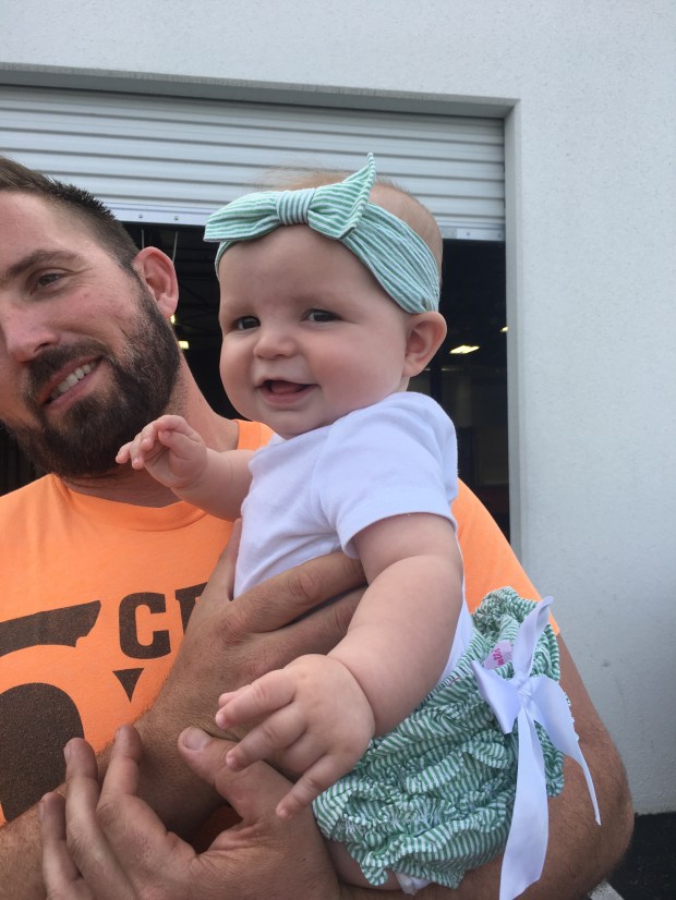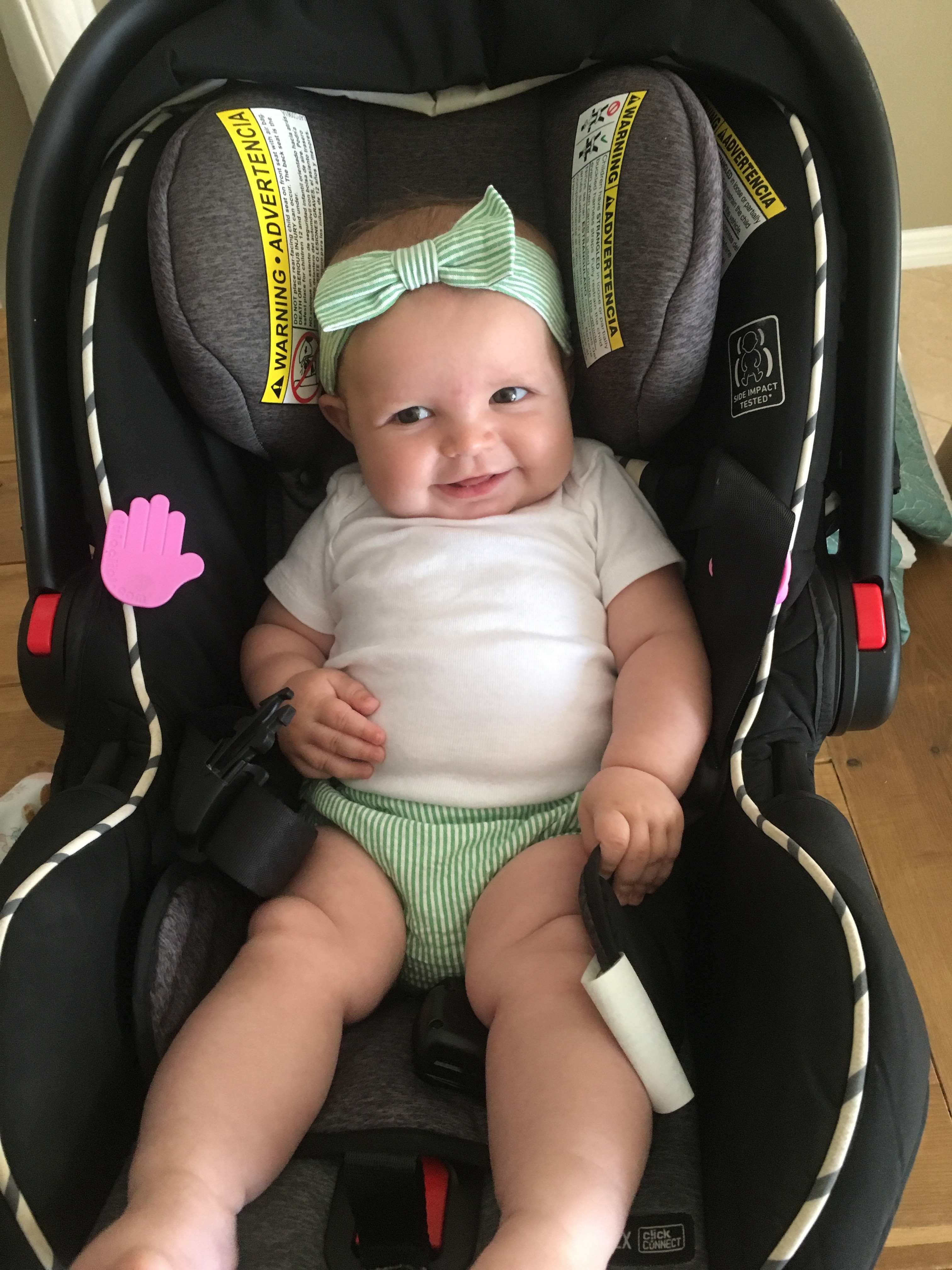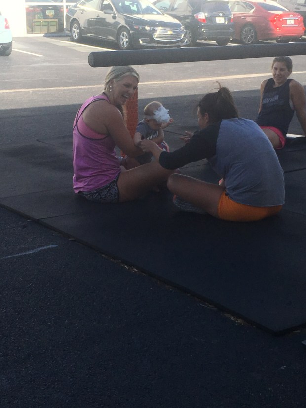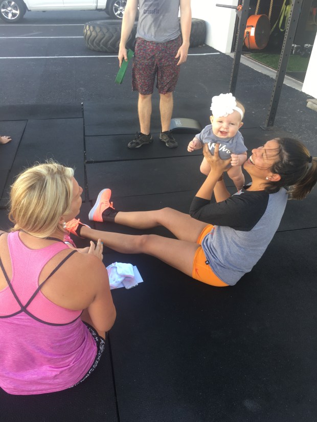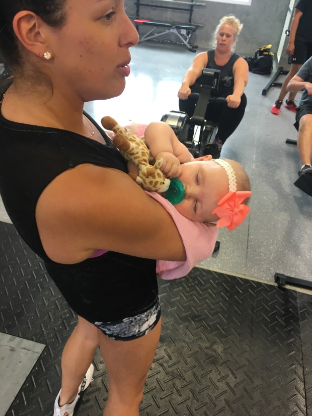 Once we got to the gym I woke her up to feed her and she was back to her happy, normal self and chilled in her swing while I coached. Emily was awesome and came to play with her so I could workout afterward!! (Seriously have the greatest friends ever, I know!)