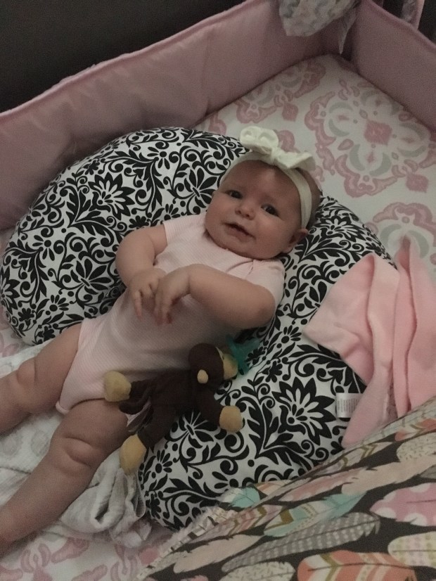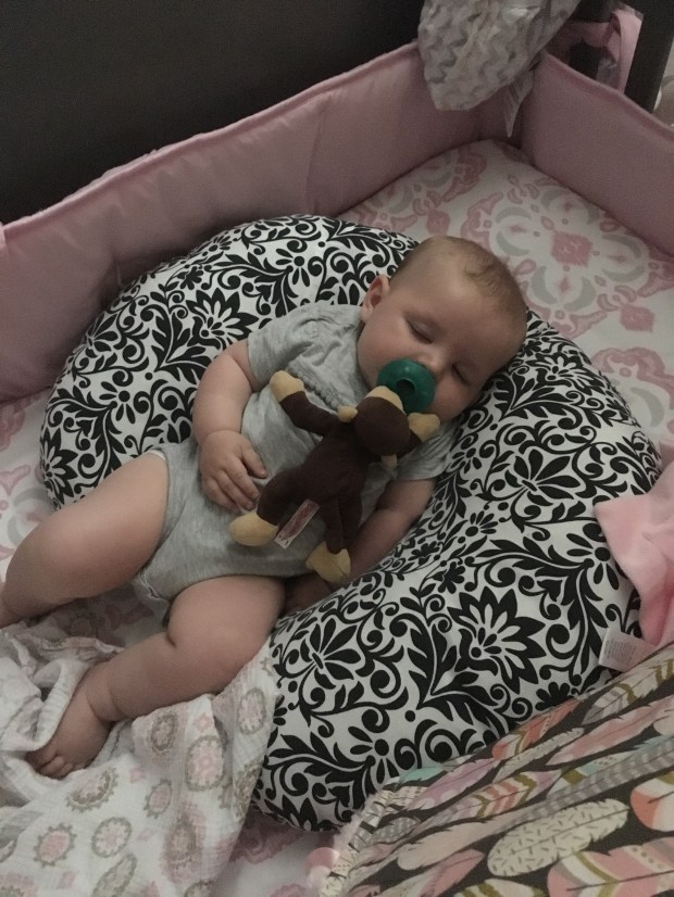 Isn’t that the saddest sound? For the record, I promise I’m not an awful mom who just set her down to video her crying. This was about 20 minutes in after I tried literally everything to calm her down. Holding her didn’t help. Holding on her belly didn’t help. Diaper change? Nope. Mylicon and bicycle legs for gas? Also nope. Pacifier and rock incase she’s still tired…nada. Feed her? Helllll no. Sit down with toys? Worked for a split second then also a big fat NOPE.