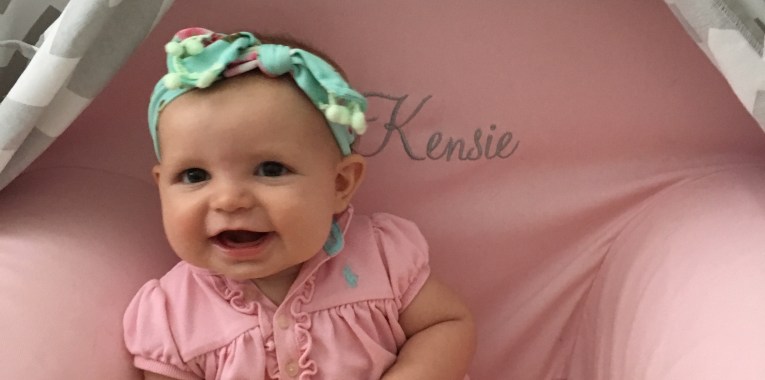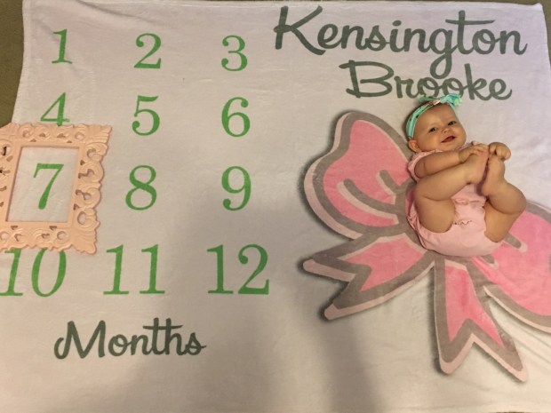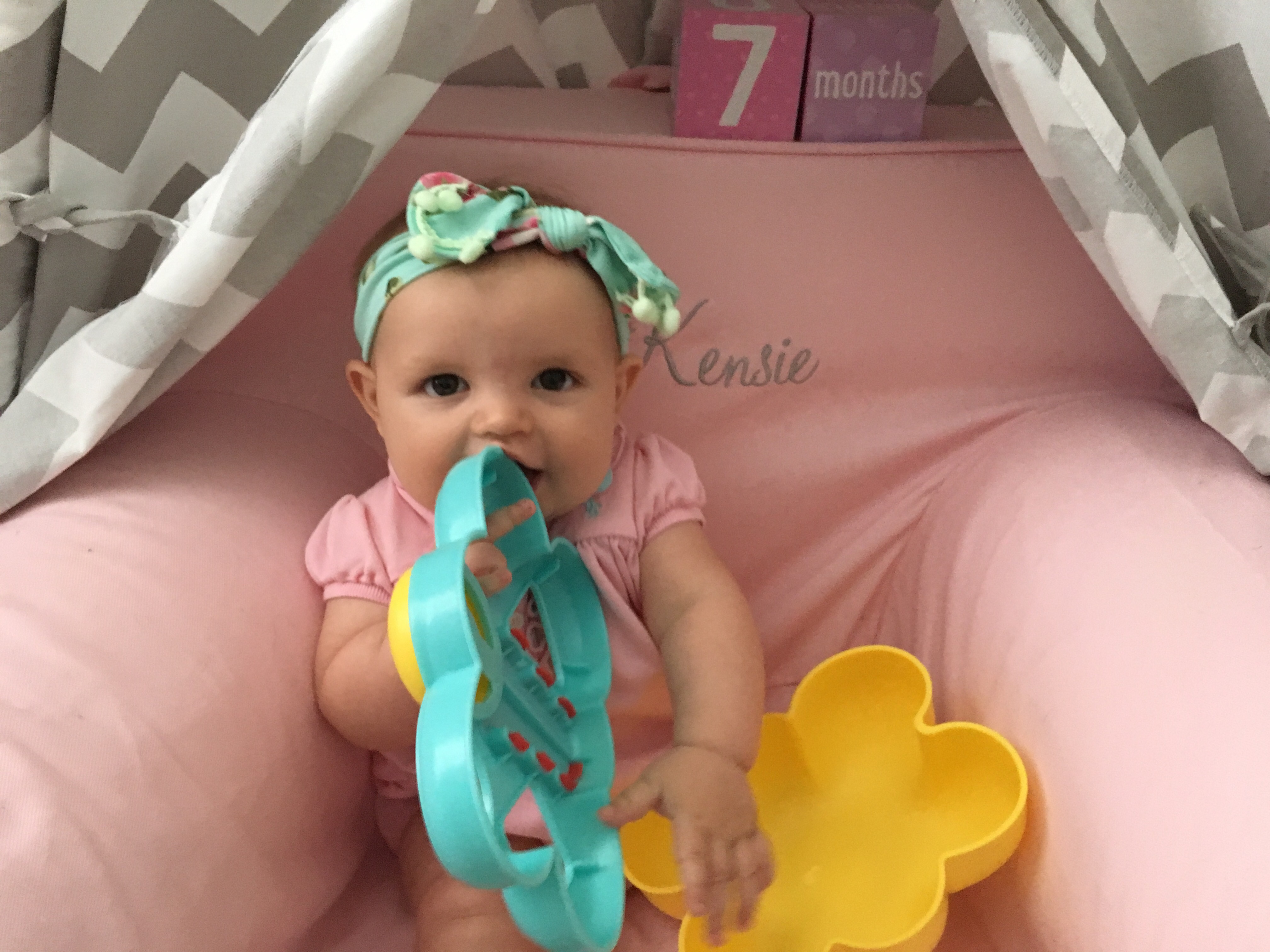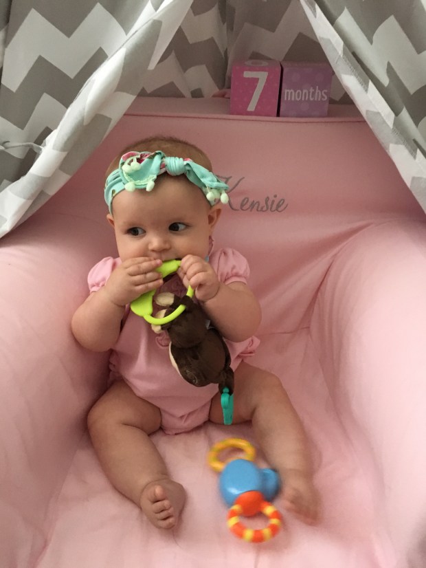 Kensie LOVES to sit up on her own and play, scoot everywhere, bath time, putting absolutely EVERYTHING in her mouth and sleeping in mommy and daddy’s bed.
