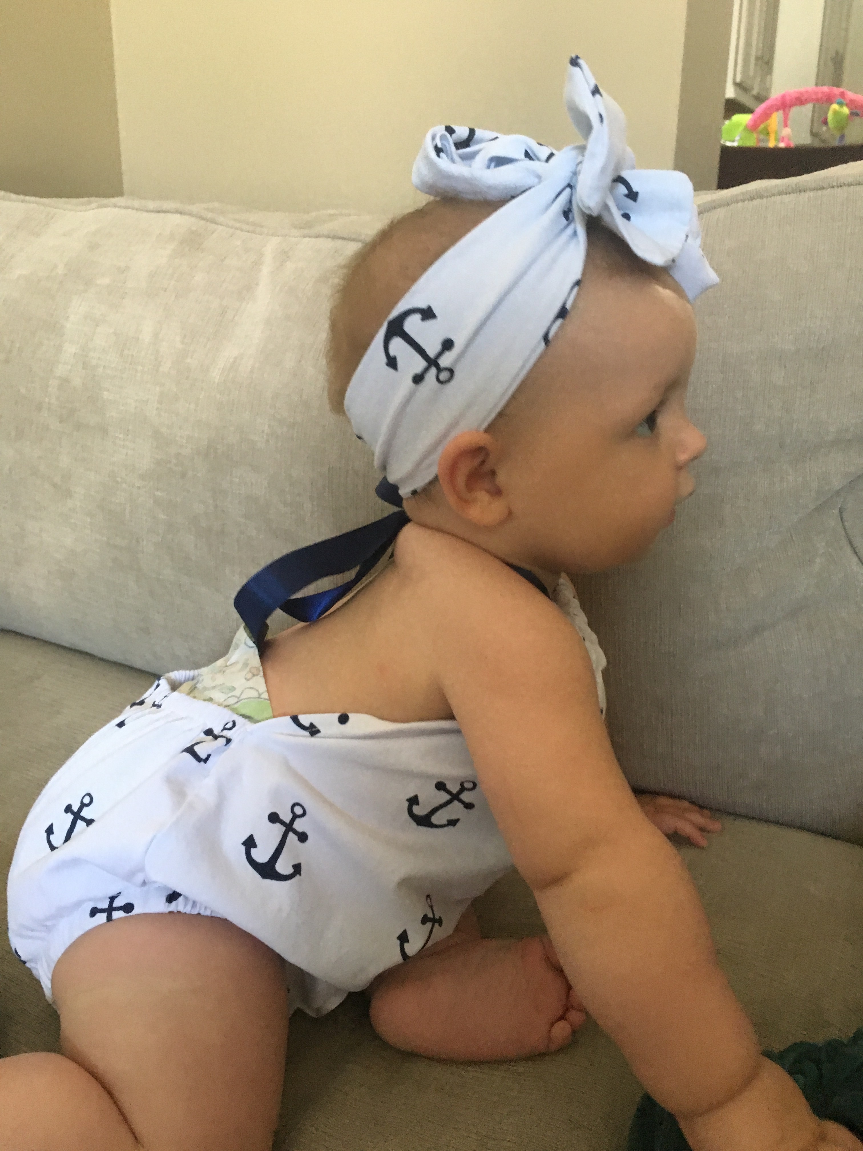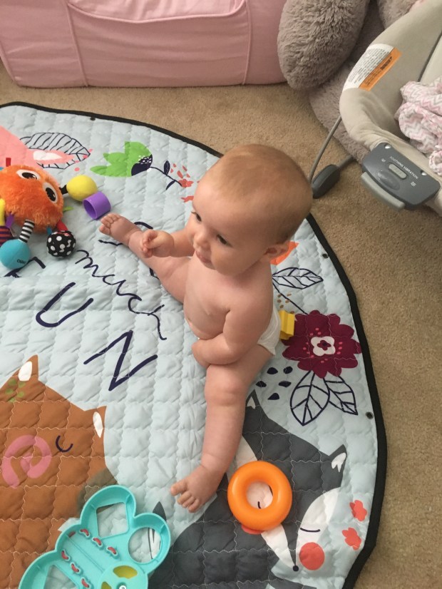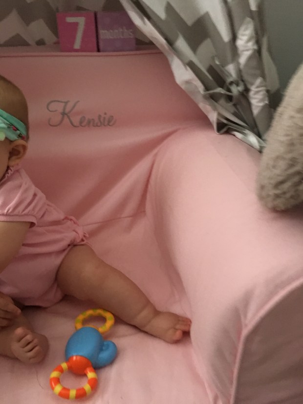 Kensie is still working on figuring out her crawling/scooting/getting where she wants to go skills. If she’s on her stomach, she just slides backwards.