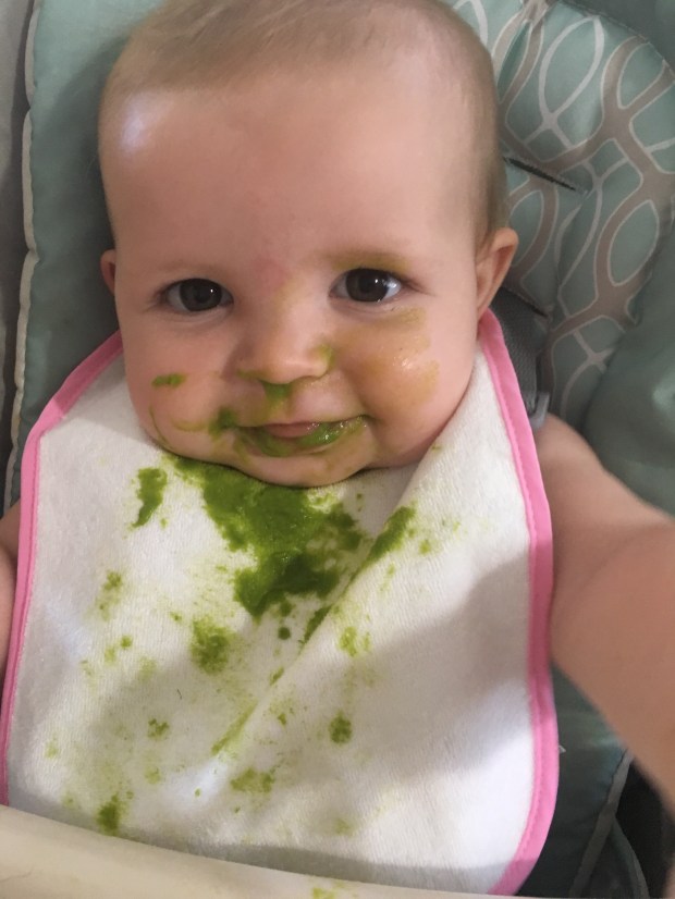 Not only will Kensie not eat under a cover, she also won’t eat if she hears ANYTHING. I had to go into the bathroom to feed her at brunch just to attempt to get her to eat and not look around. She eats for 3 seconds, hears a drip of water, sits up and looks around…Eats again. Sits up and claps for herself… π