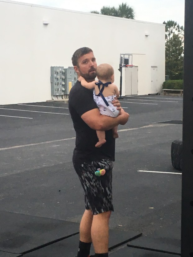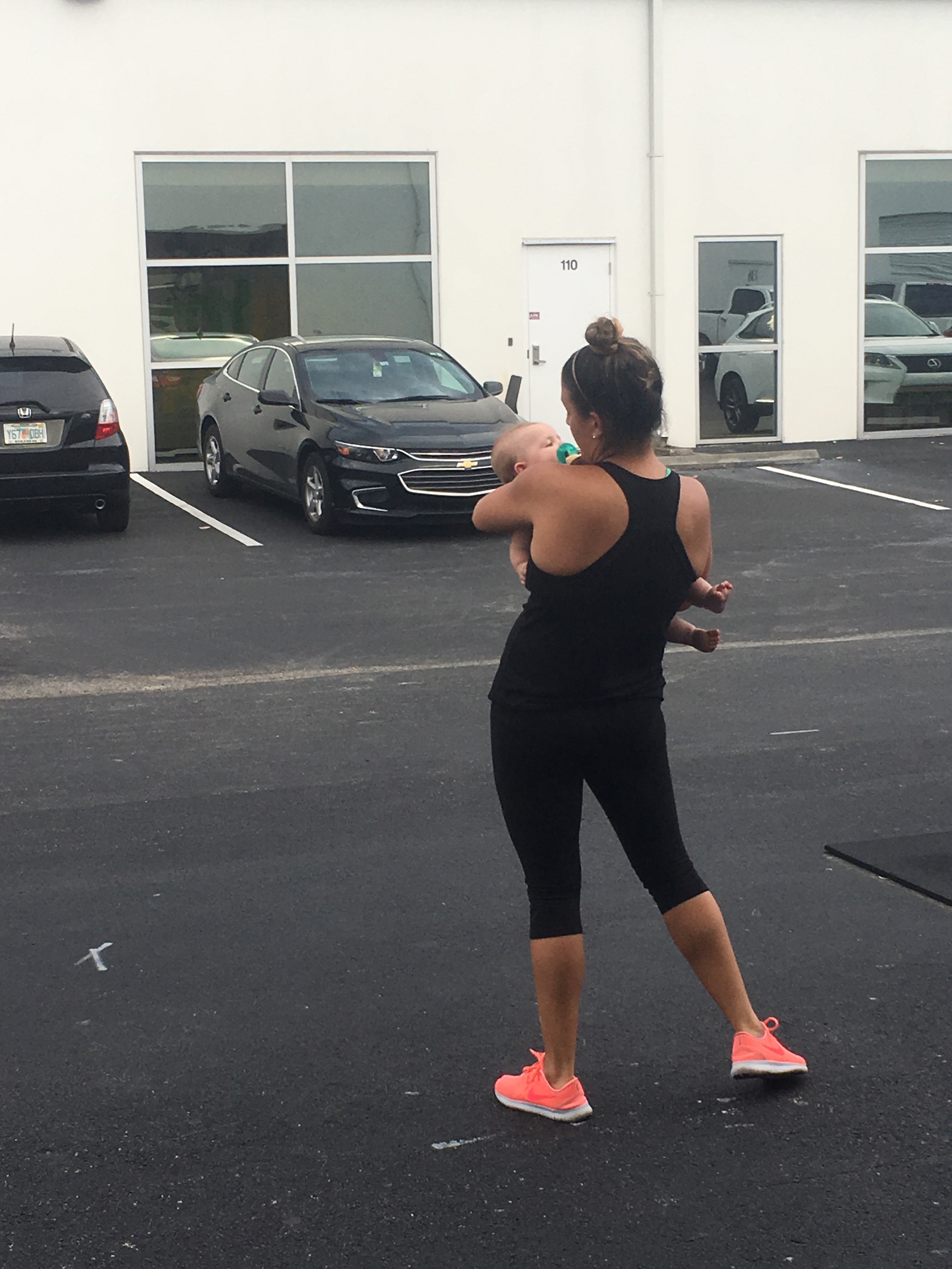 We got an early start so we could get up to the gym for the Hero WOD, Murph! Kensie was SO good while mom and dad worked out! Other than a quick break to move her from her car seat to her blanket to play, she kept herself entertained the whole time.