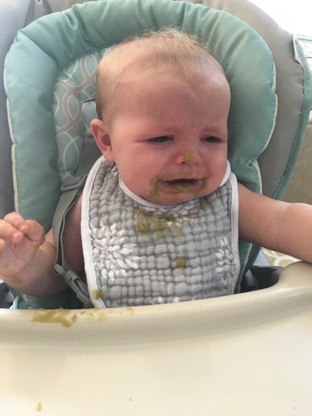 I think her afternoon nap wasn’t quite long enough because when I got her out of her chair she cried every time I sat her down anywhere. She was only happy if I held her.