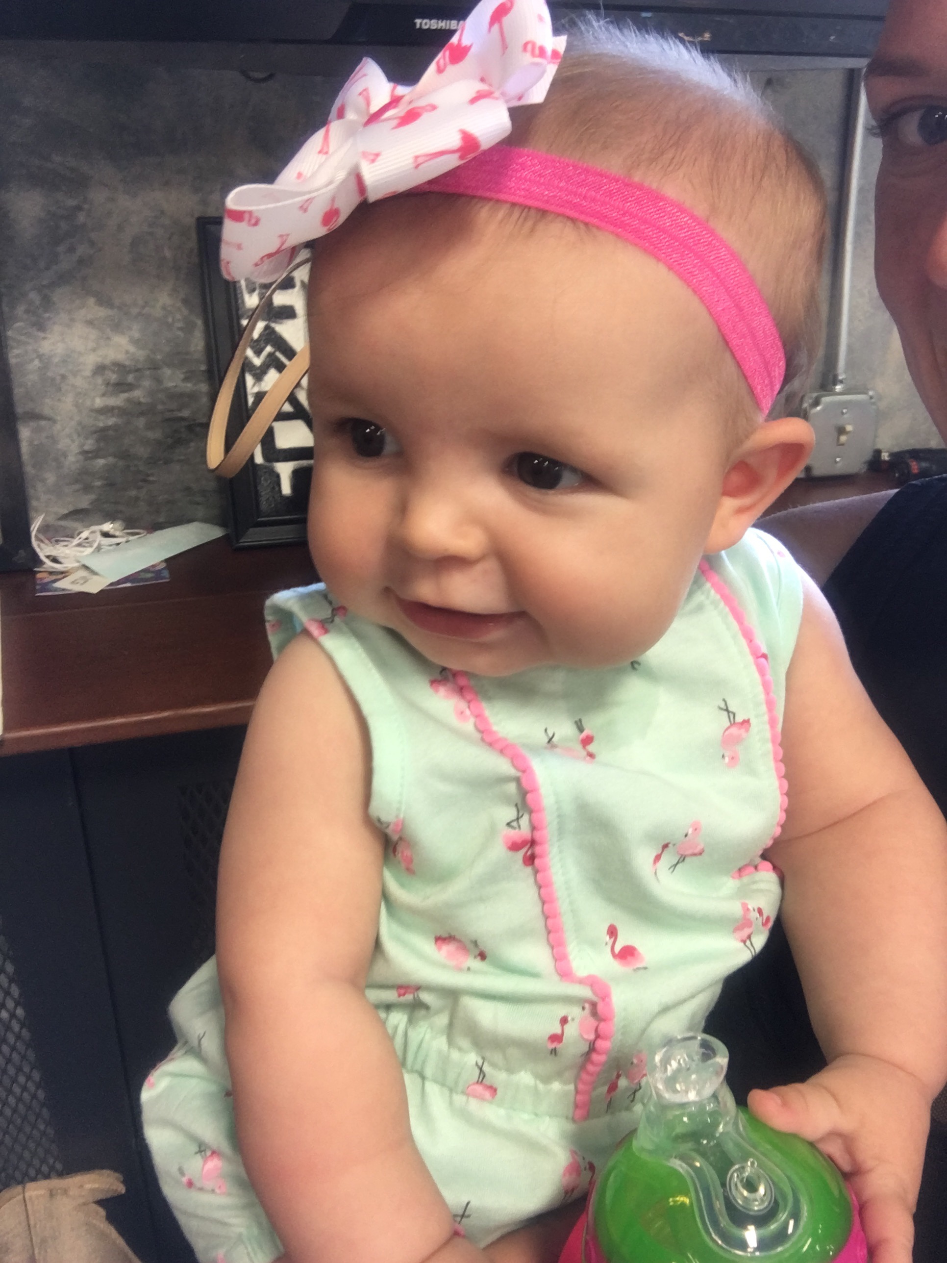 When we got home, Kensie went right back to playing while I worked on some new outfits for our Bows of Kensington shop! I got some adorable rompers from Old Navy and wanted to snazz them up a little – and OF COURSE make sure they had matching bows.