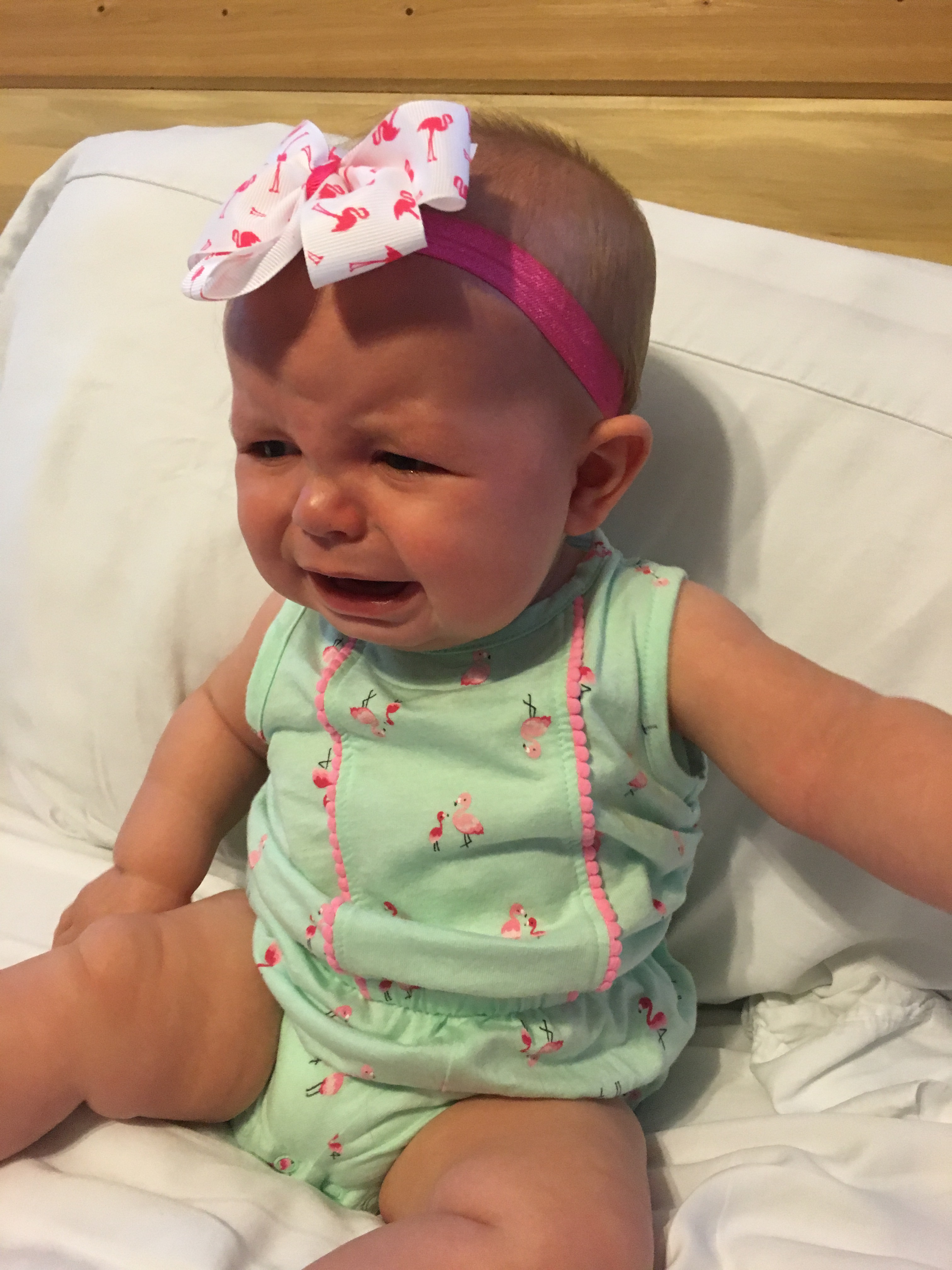 I think her afternoon nap wasn’t quite long enough because when I got her out of her chair she cried every time I sat her down anywhere. She was only happy if I held her.