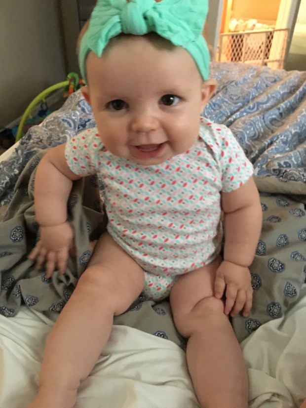 OH – and Kensie’s bow today is from Baby Bling Bows and I am pretty sure they’re my new favorite!!! Perfect fabric that didn’t leave marks on K’s head and I love the colors!!