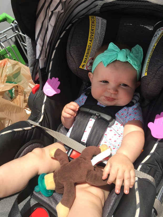 Kensie tried her best to play with Kinsley today. I missed the photo of her face smashed all the way against the side. She didn’t quite understand the concept of her baby jail.