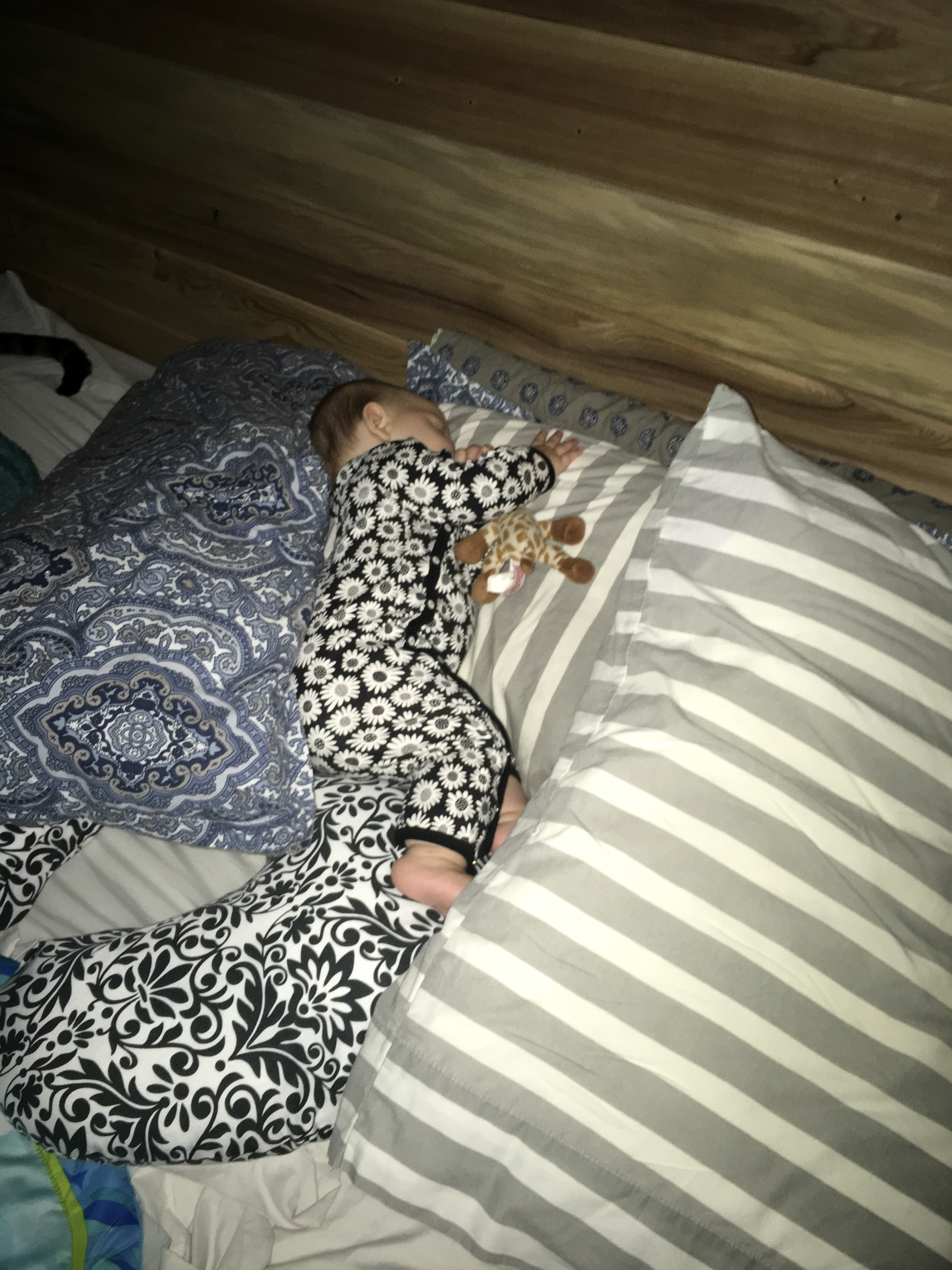 After a good day…this is how I ended up putting my child to sleep tonight once she finished she throwing her body around, tossing her pacifier, yelling and fake crying for 45 minutes.