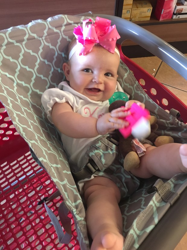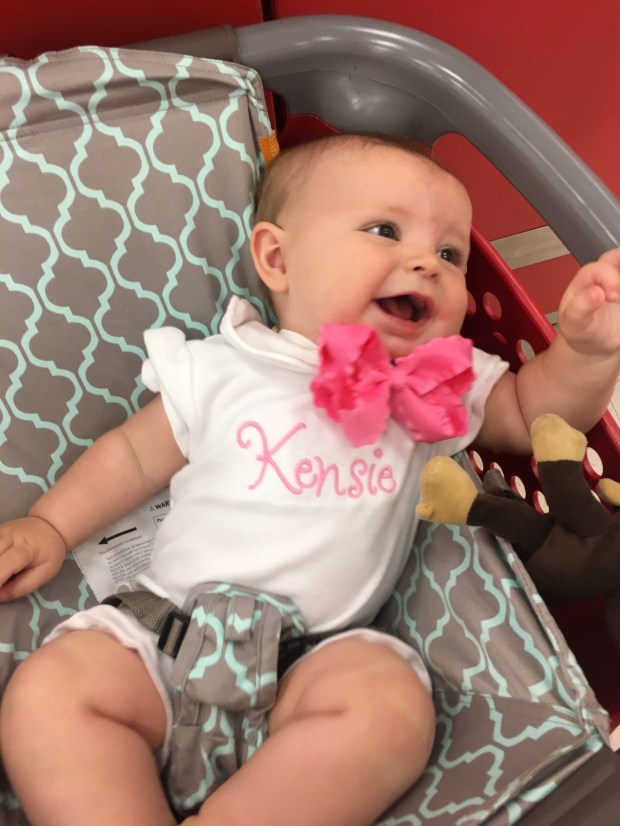 Kensie and I had a Friday full of errands! Starting with new diapers. Kensie still has to wear sensitive diapers or she gets rashes (which is just lovely since I have about 200 swaddlers that she can’t wear). We used Seventh Generation when she was smaller and they were fine. This morning? Not so much. When she woke up, her PJs were WET from her diaper leaking. How disgusting.