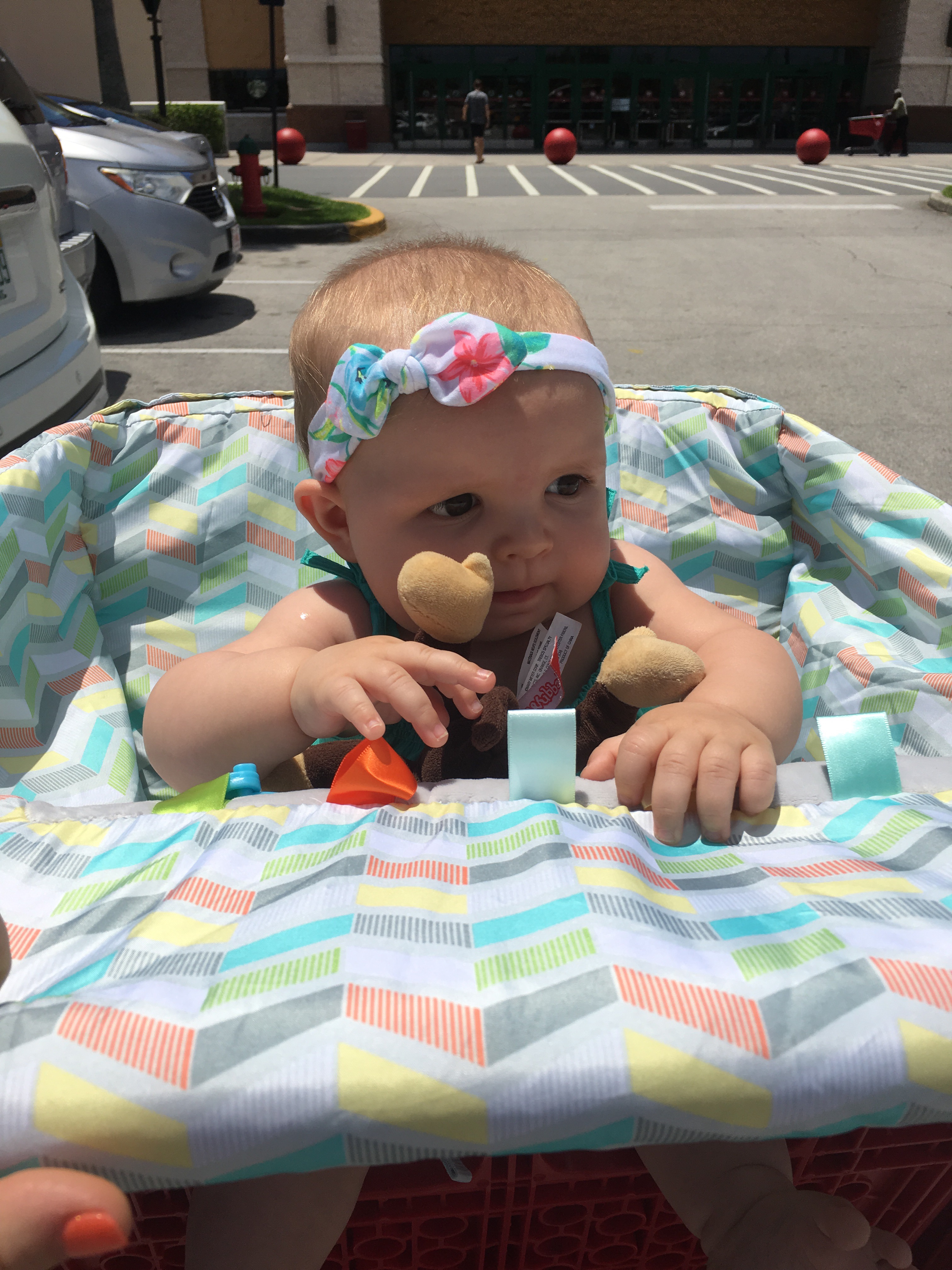 She kept playing with the little tags on the front you hang toys from (she’s obsessed with tags). When we walked by the toys, they had a blanket with tags all over it – of course Kensie needed it.