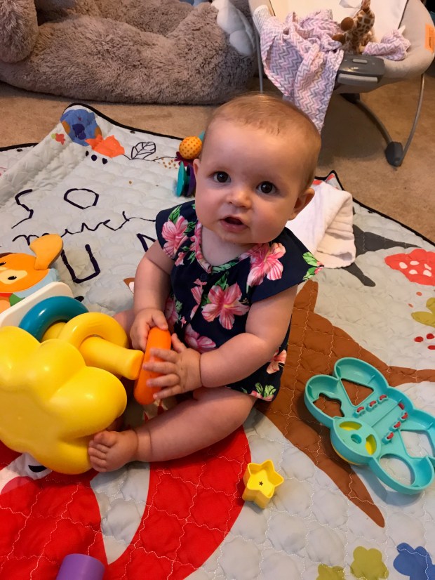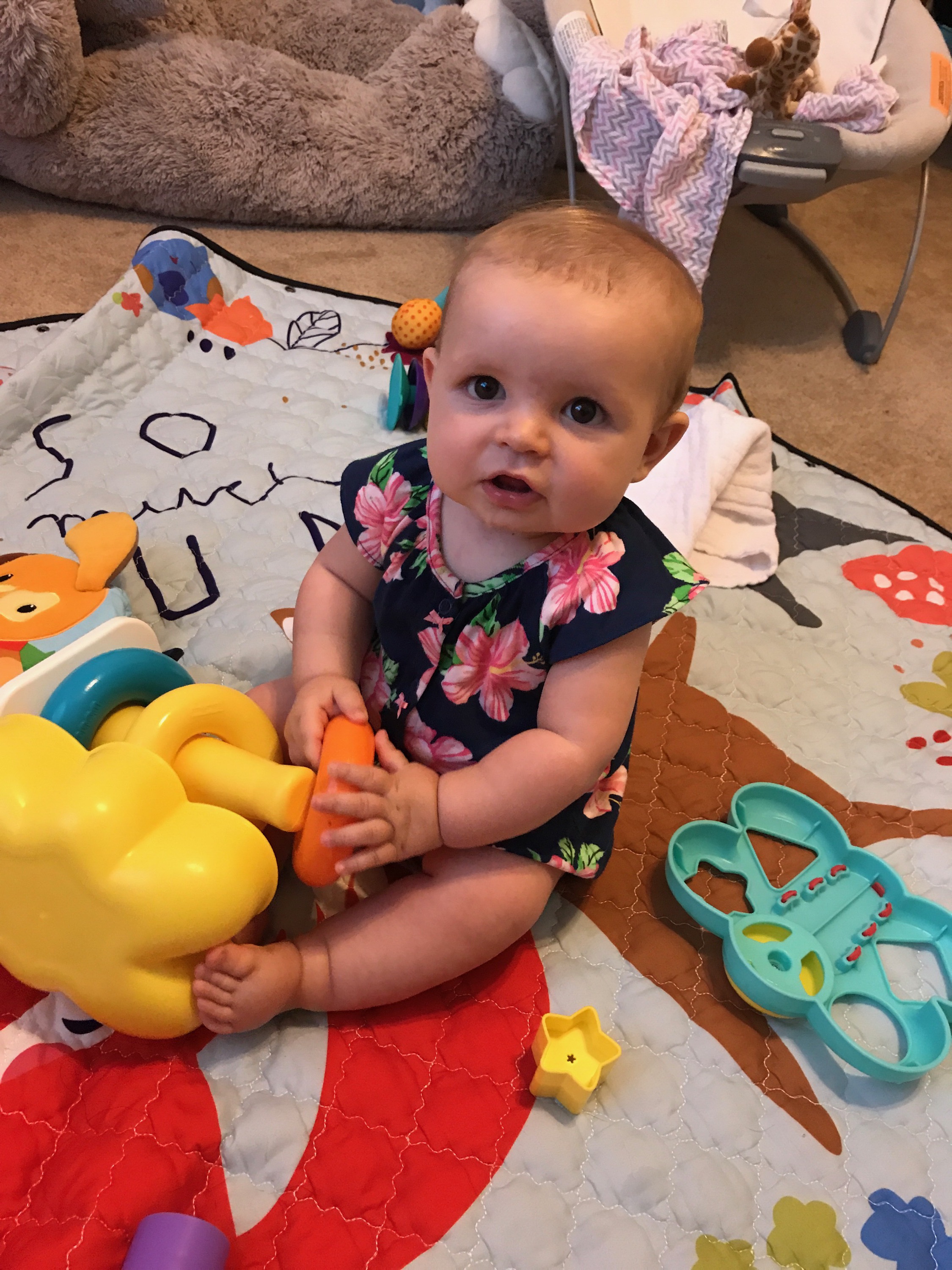 Kensie Brooke had a great Friyay!!! AND SHE CLAPPED!!!! At the gym this morning Ashley said she did it but I missed it. Then when we got home I said “yay Kensie!” and clapped while she was playing – and she copied me!!! Such a smart little nugget!!!