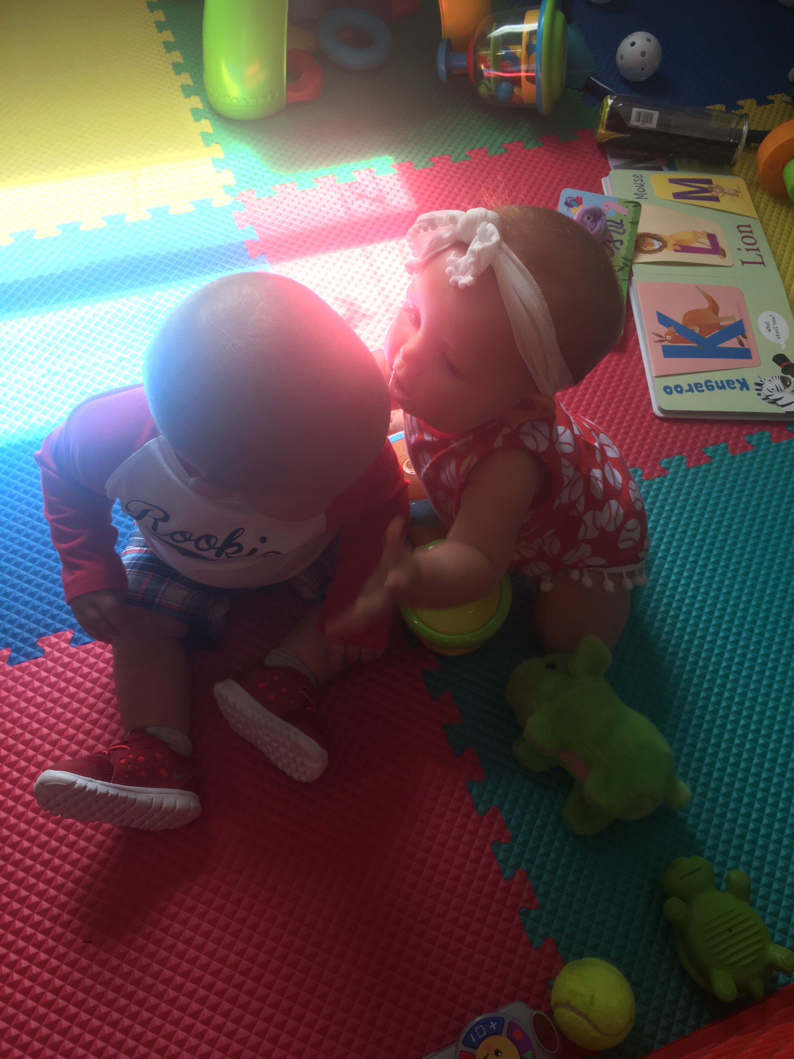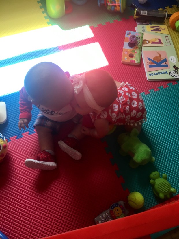Sunday K continued her baby kissing at church in the nursery. Let’s hope it’s just a phase…