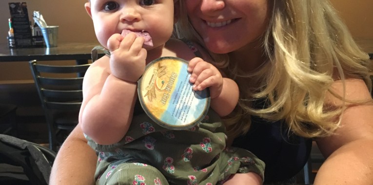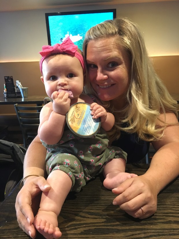After the party we met one of my best friends from home for dinner and Kensie had teething wafers for the first time!! She LOVED them and it was nice to give her something to eat to occupy her for a while so I could get a bite of my own food in my mouth without her trying to grab it.
