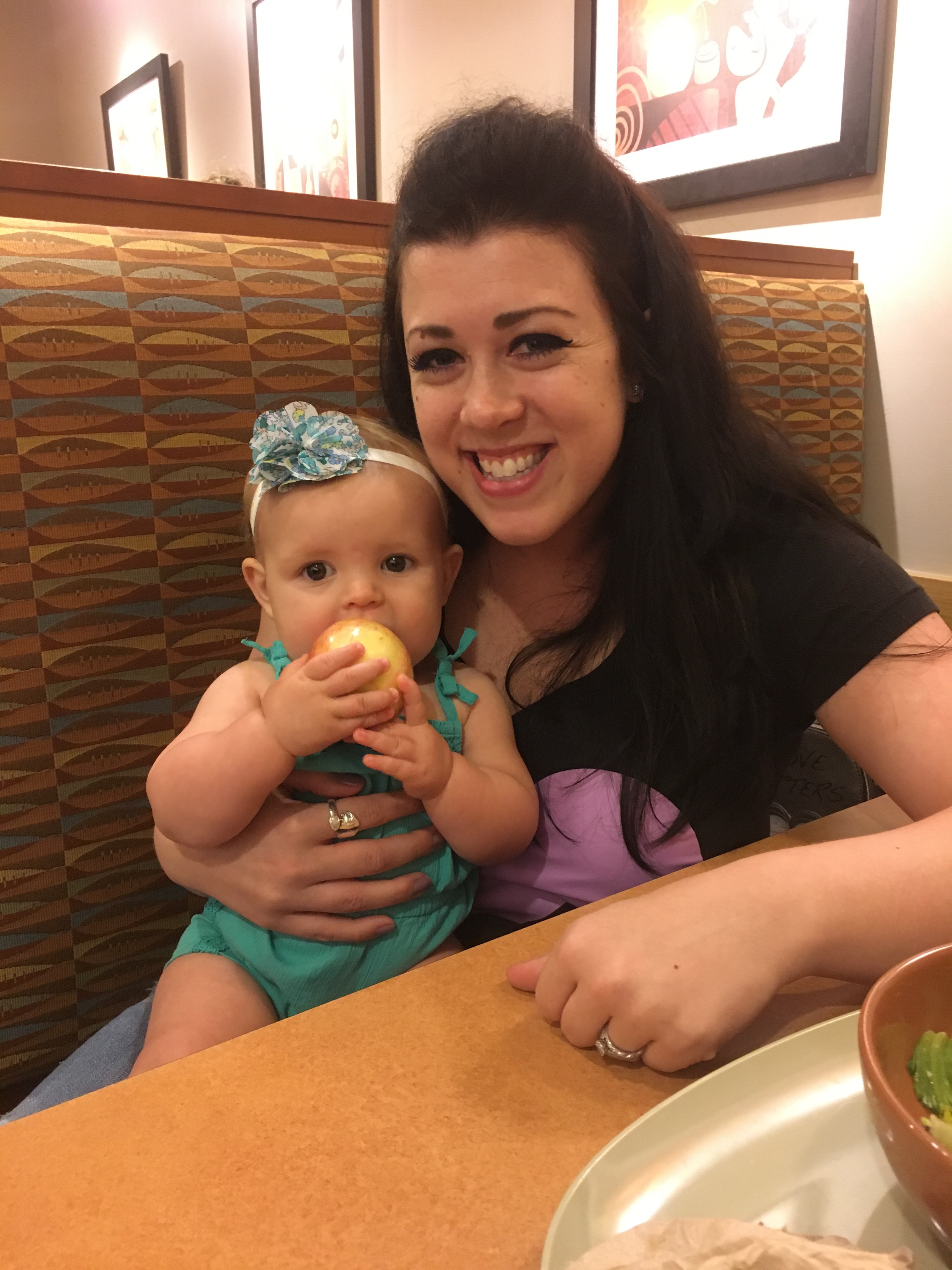 It was also the first time I’ve fed Kensie baby food in public! We ended up with a slight mess on her romper but it went better than I expected. She enjoyed it for a little while but it wasn’t enough to completely trick her from wanting everything that WASN’T hers.