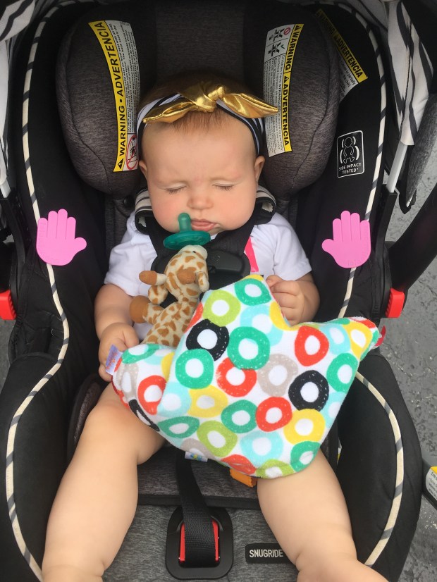 Her car seat. No joke. Not sure if it’s a familiar thing that’s comforting, if it’s comfy in general, if she thinks it means we are about to leave or what; but, the last 2 days it has calmed her down immediately and she took her nap!