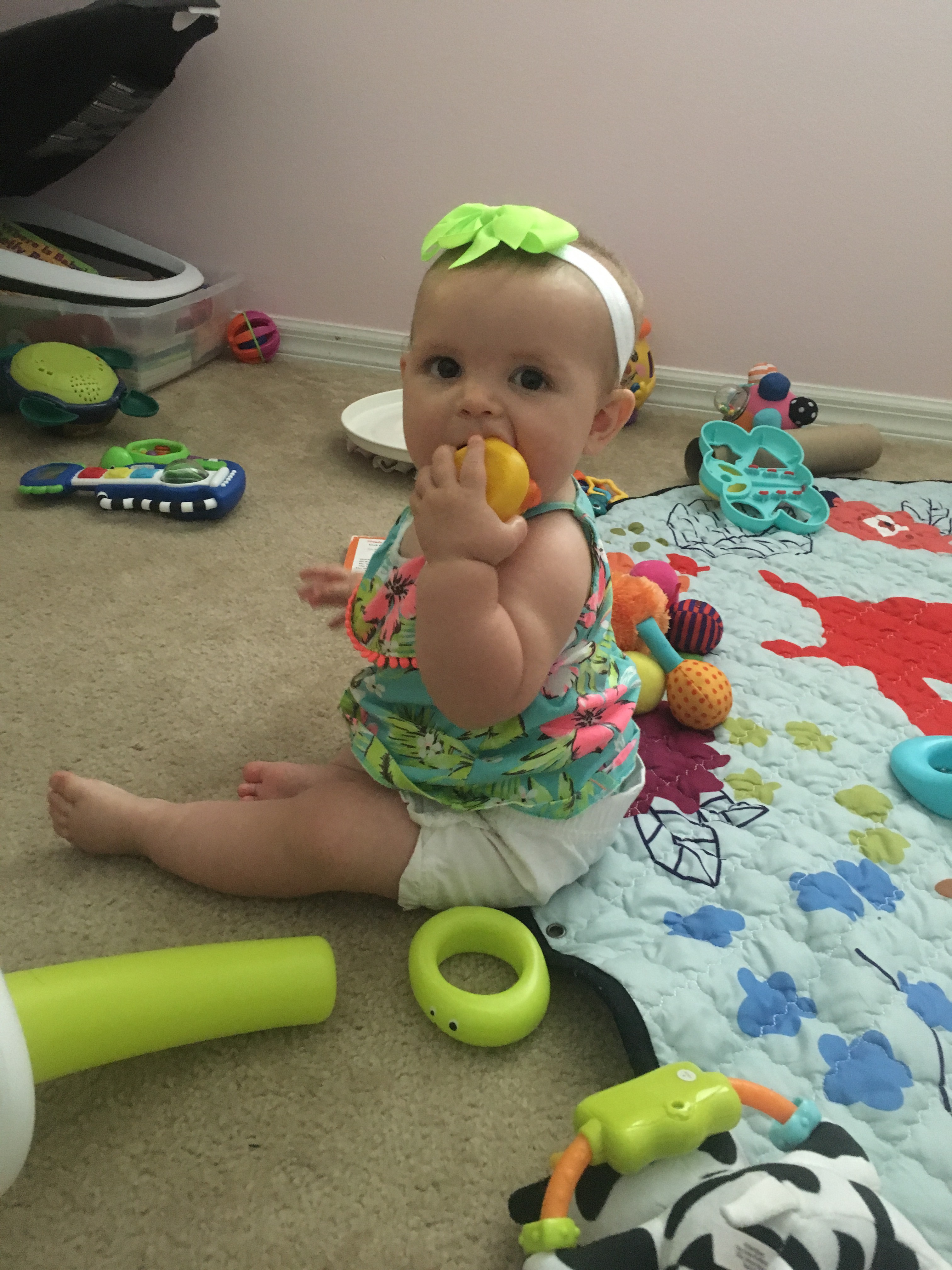 Today I’d like to share a video with you all of my child trying to eat the door. Yes, the door. That is not a typo. For those of you that think I’m exaggerating when I say Kensington puts EVERYTHING in her mouth, I promise I’m not.