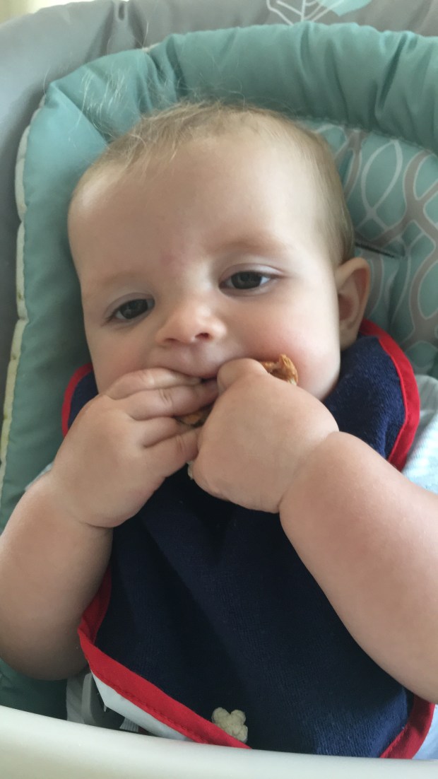 Other than about 6 gallons of breast milk, Kensie had a pretty fun lunch! I made her the corner of a peanut butter sandwich because I really just wanted to see what she’d do.